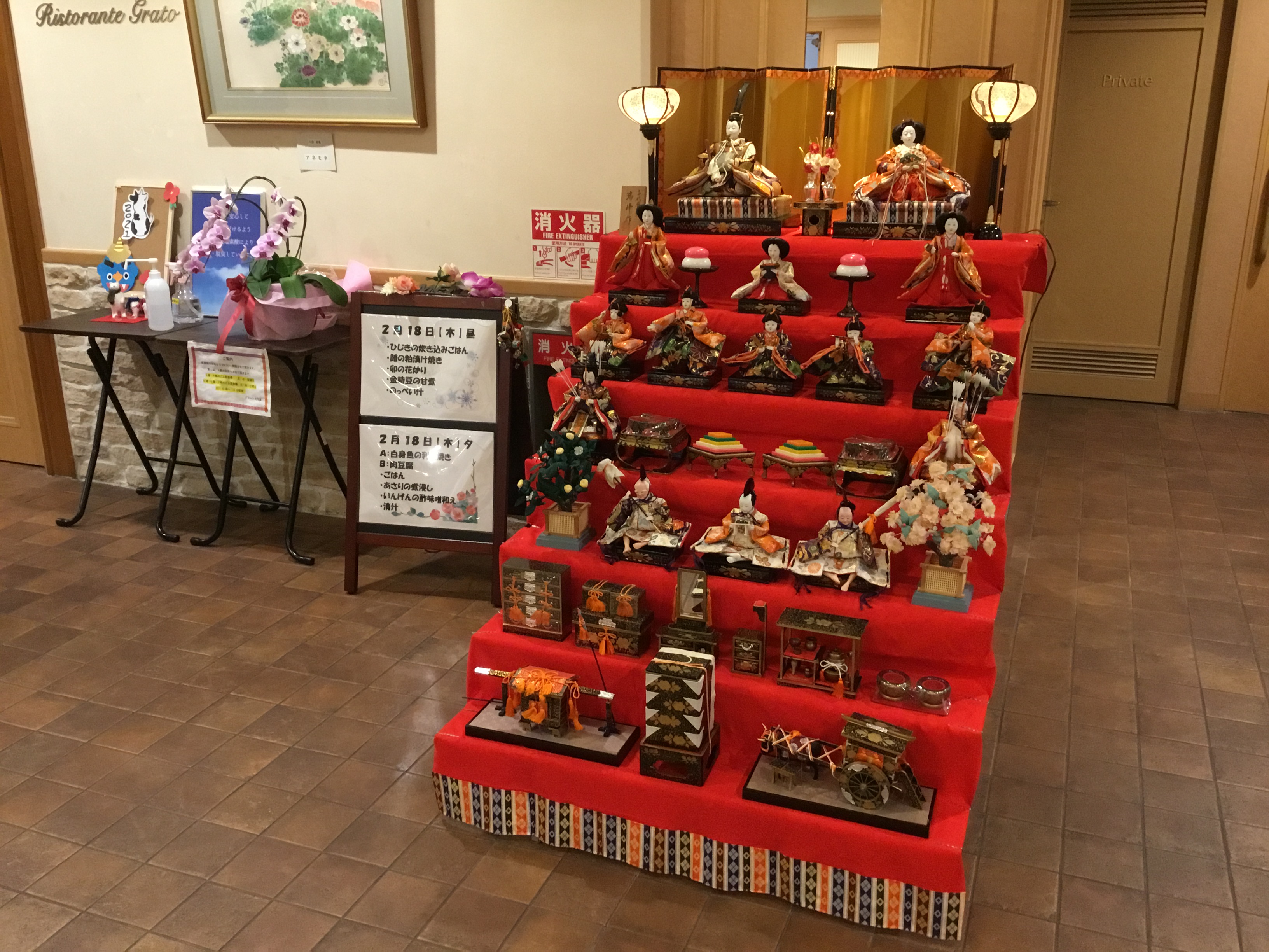 来たる3月3日に備えて、グラートでは早めにお雛様を飾り付けました。
