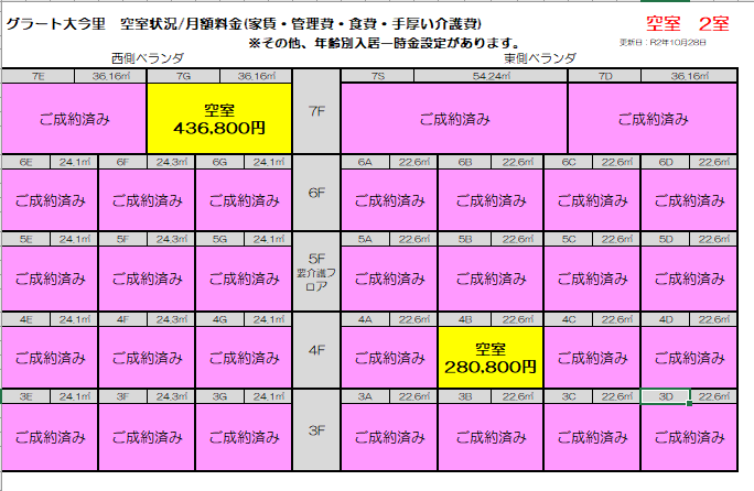この度は、グラートの現在の空き状況をお知らせいたします!