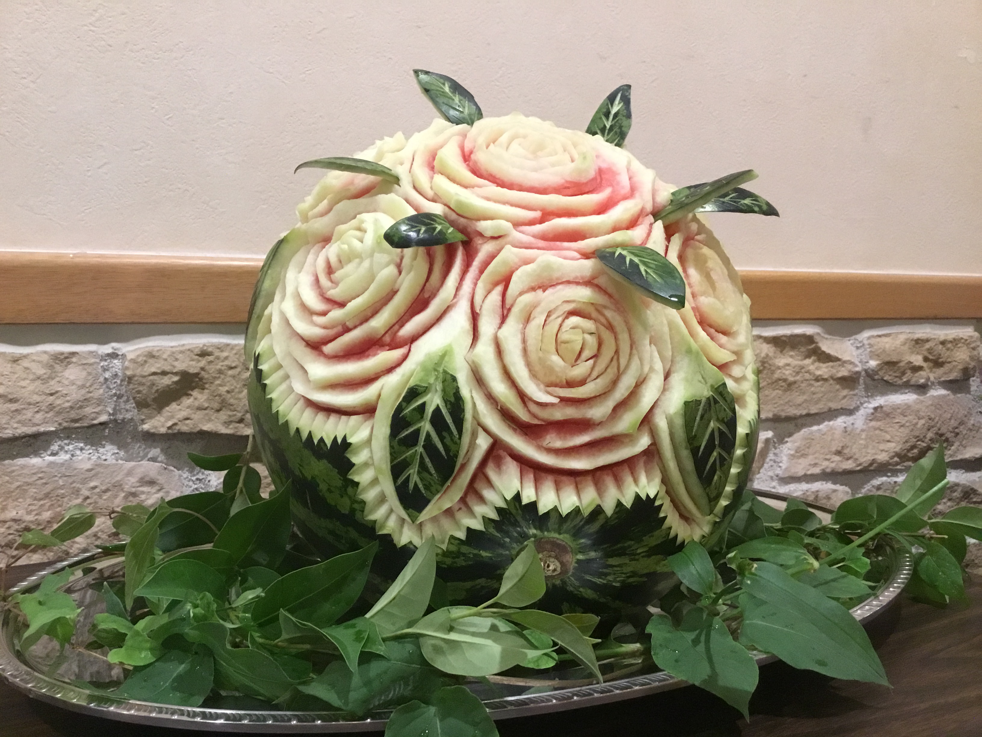 果物などにナイフなどで切れ目を入れていき、様々な模様や形を浮かび上がらせる手法で