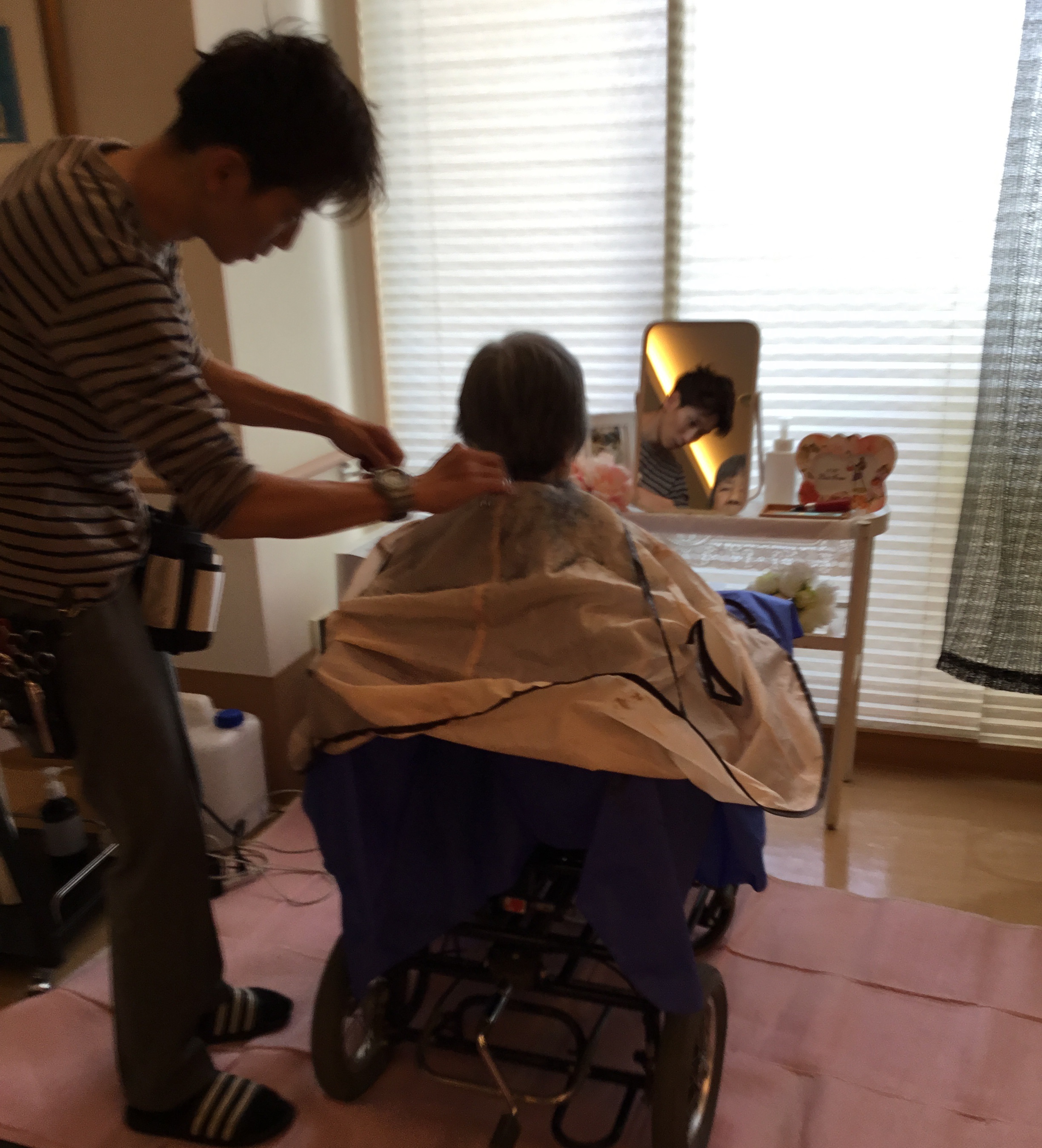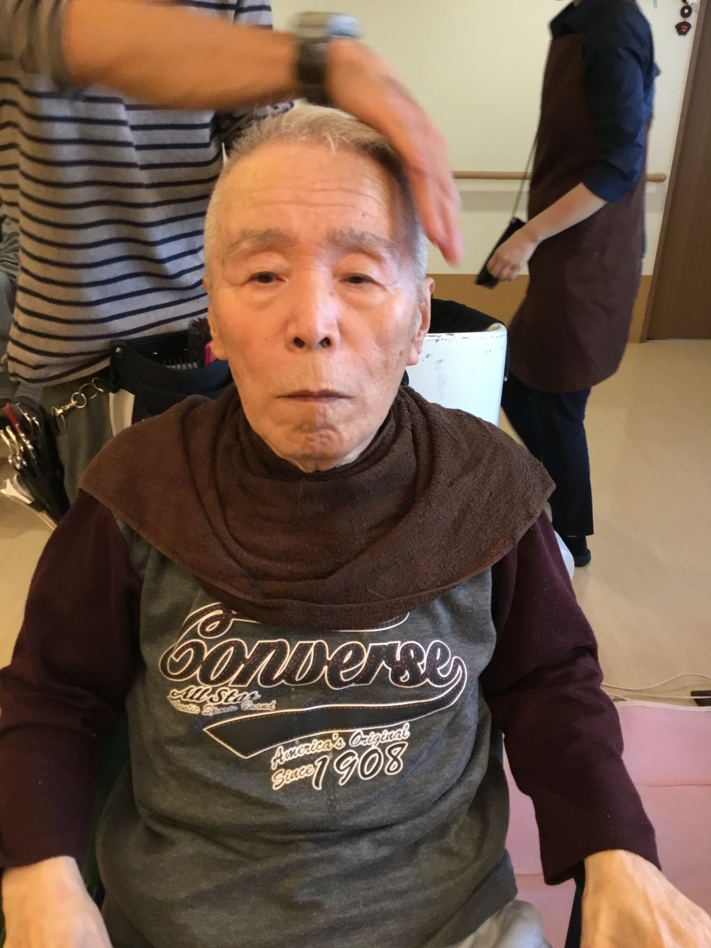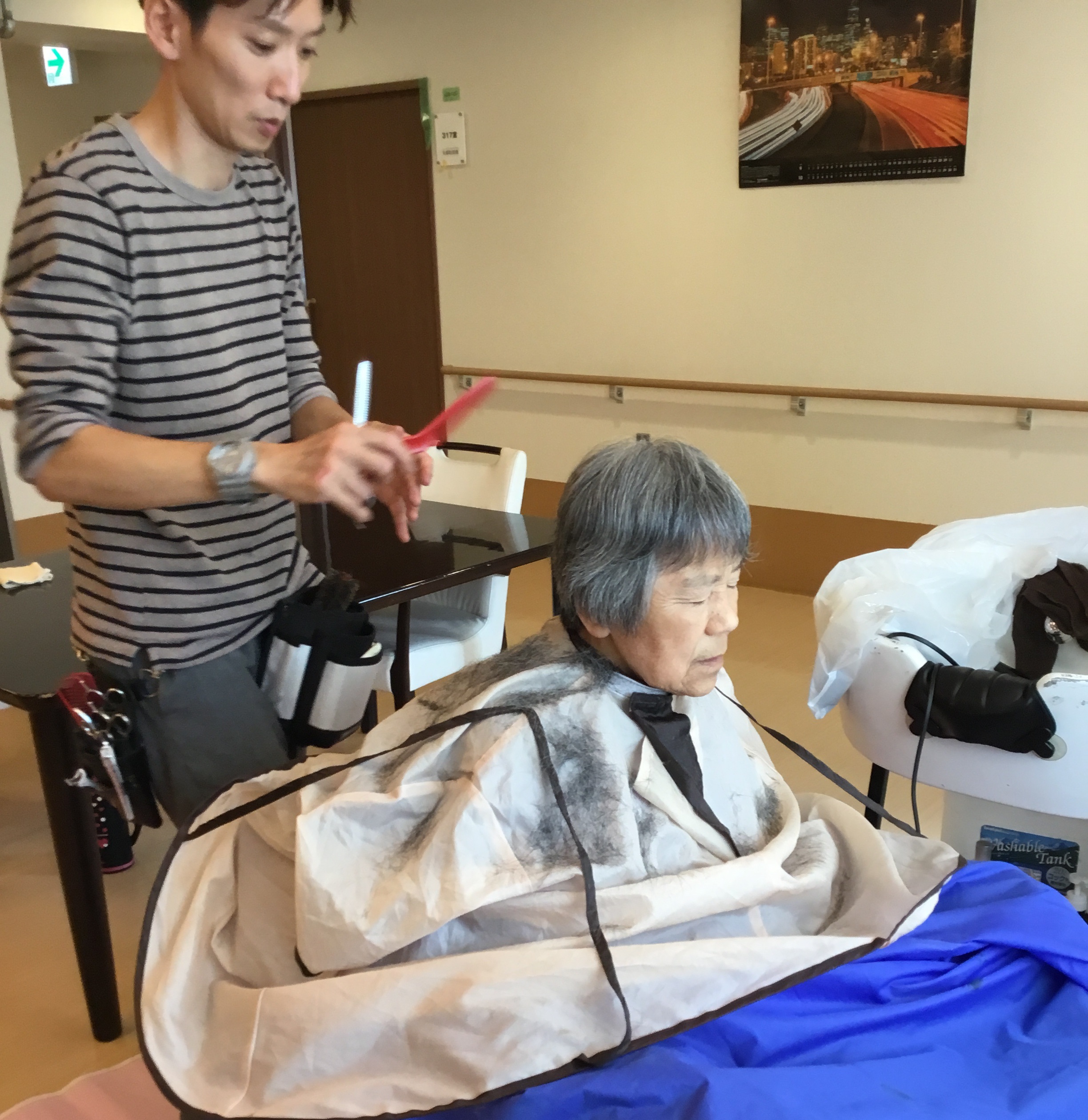 10月13日(日)、スフェリカル・モスさん(訪問理容室)が来てくれました(^○^)オシャレにカットして下さり、気持ちよくシャンプーもして頂きました。気持ち良すぎてウトウトされている方もいましたよ。