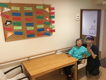 いつもスタッフブログをご覧頂き、誠にありがとうございます! 3Fスタッフ島ですヽ(^o^)))丿   皆様お如何お過ごしでしょうか?本日よりゴールデンウィークにはいり 早いもので明日から5月に入りますね!       本日は5月5日の子供の日に向けて、またコロナ収束を願い、 皆様とこいのぼりの飾りを一つ一つ丁寧に作りました!   IMG_3114.JPG IMG_3117.JPGのサムネール画像   IMG_3119.JPG IMG_3123.JPGのサムネール画像       画用紙を使った「こいのぼり」には模様と皆様の名前を書いていただいています!     施設内の各スタッフにも名前を書いてもらいました!     男の子の成長を祝って飾られる鯉のぼりには、『健やかな成長と立身出世を願う意味』が込められているようです。   まだまだ新型コロナウィルス感染症が猛威を振るっており、気が抜けない日々が続いておりますが、 ファインの中で泳ぐこいのぼりを眺めていただいて、気持ちだけでも元気になって頂きたいです ( ˘ω˘ )      では!次回更新をお楽しみにお待ちくださいませ★!(^^)!