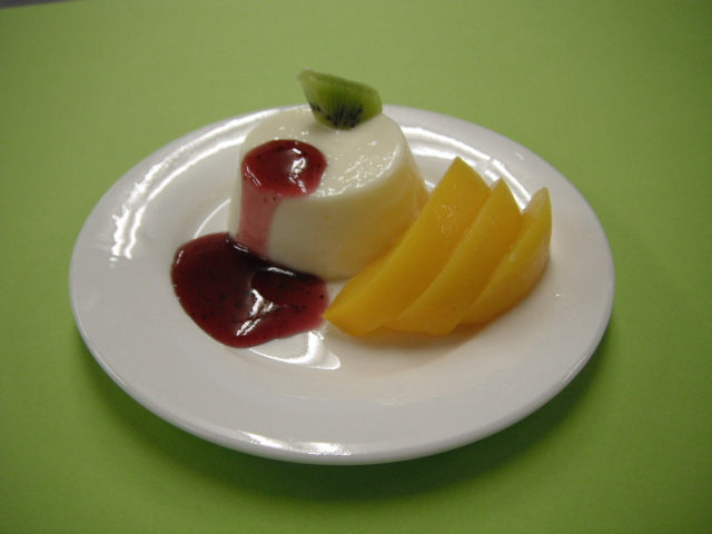 今日の手作りおやつ☆ 2012 5/23 スタッフブログ 瑞光苑 2012年5月23日今日の手作りおやつはパンナコッタのブルーベリーソースかけを作って提供しました☆ パンナコッタとはイタリア発祥のスイーツで、主に生クリームを用いて作られる一種のプリン?ババロア?のようなものらしいです(^^;今回は生クリームと牛乳を2:3の割合で作成しました☆★ 付け合わせに桃を沿え、上にキウイを飾りました!ちょっとケチってしまったかも(笑) 私個人としては若干甘かったかな...と思いましたが、皆さんは如何だったでしょうか...? スタッフブログ 瑞光苑