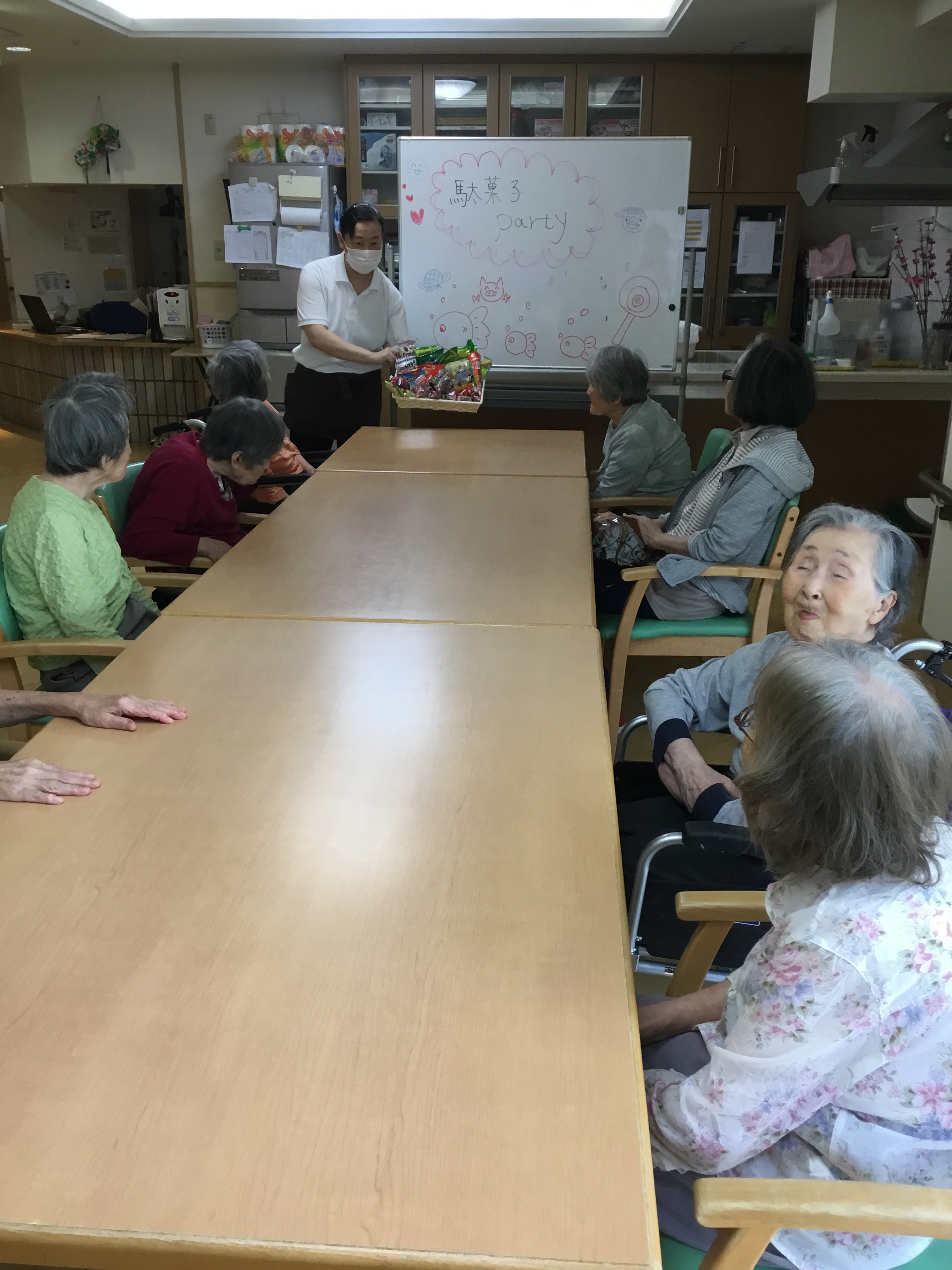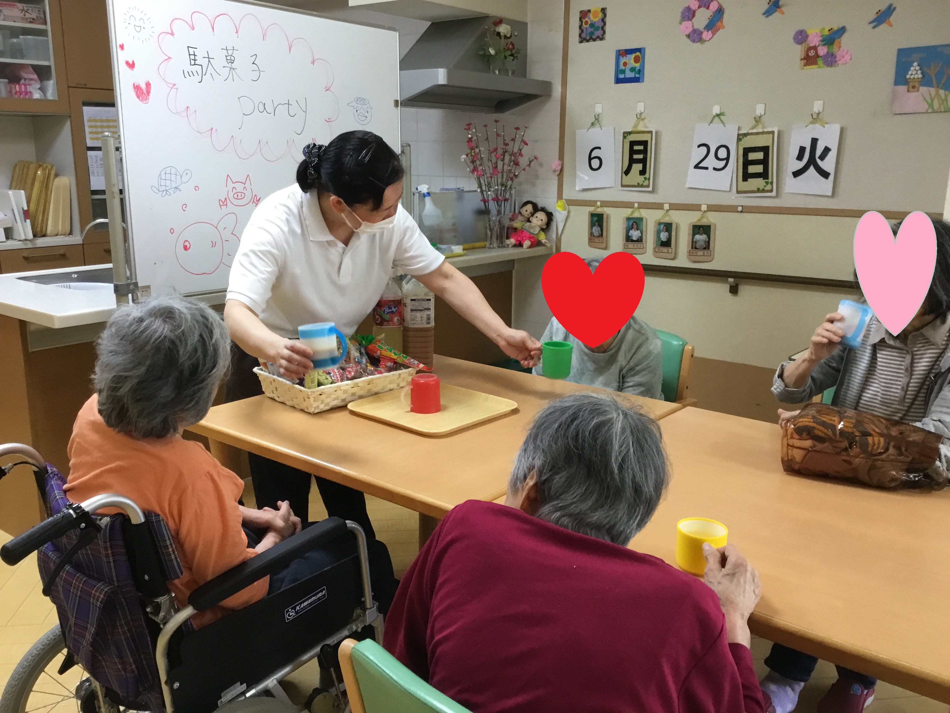 皆さま こんにちは!! 最近、大雨が降ったり、とても蒸し暑かったり なかなか大変なお天気が続いていますね...。 体調を崩しやすい気候ですので 皆さま、くれぐれもお気を付け下さい。 --------------------------------------------------------- 先日、北条GHでは 昔ながらの駄菓子をそろえた 駄 菓 子 パ ー テ ィ ー!! を開催致しました☆ IMG_6720.JPG IMG_6726.JPG たくさんの駄菓子を用意させて頂きました◎ IMG_6721.JPG 皆さま何事かとソワソワされている様子です!(笑) IMG_6730.JPG 主催者より駄菓子パーティー開催のお言葉を頂き、 飲み物をお配りしつつ 順番にお好きな駄菓子を選んで頂きました♪ IMG_6736.JPG たくさんのおやつを目の前に 思わず笑みがホロリ★ IMG_6739.JPG とーっても喜んで頂けました? また楽しい行事を企画させて頂きます!! 以上、駄菓子パーティーの様子を お伝えさせて頂きましたっ☆