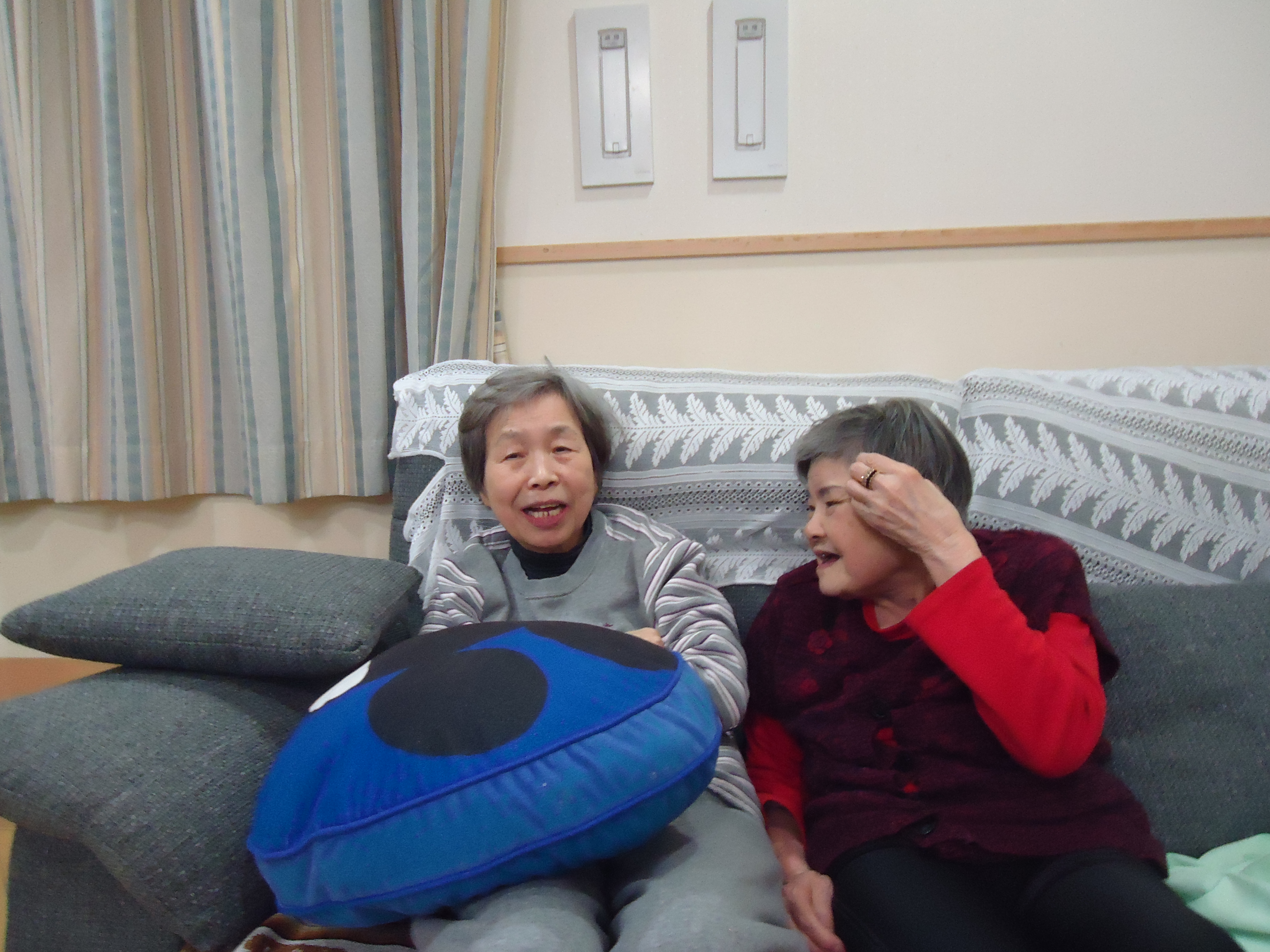 ある日の夜 2018 2/27 スタッフブログ 北条グループホーム 2018年2月27日 こんにちは、ブログ担当の尭です。 ある日の夜、2階のご利用者様が3階に遊びに来られました(^^♪ 3階のご利用者様も大喜び♪「久しぶりやなぁ」「私のこと覚えてるか?」ととても和やかな様子でお話しされていました。 フロアが違っても、こうして気の合う方との交流を深めて頂けるよう、職員が橋渡しをしなくては・・・! おやすみ前の穏やかな時間でした(*^_^*) スタッフブログ 北条グループホーム