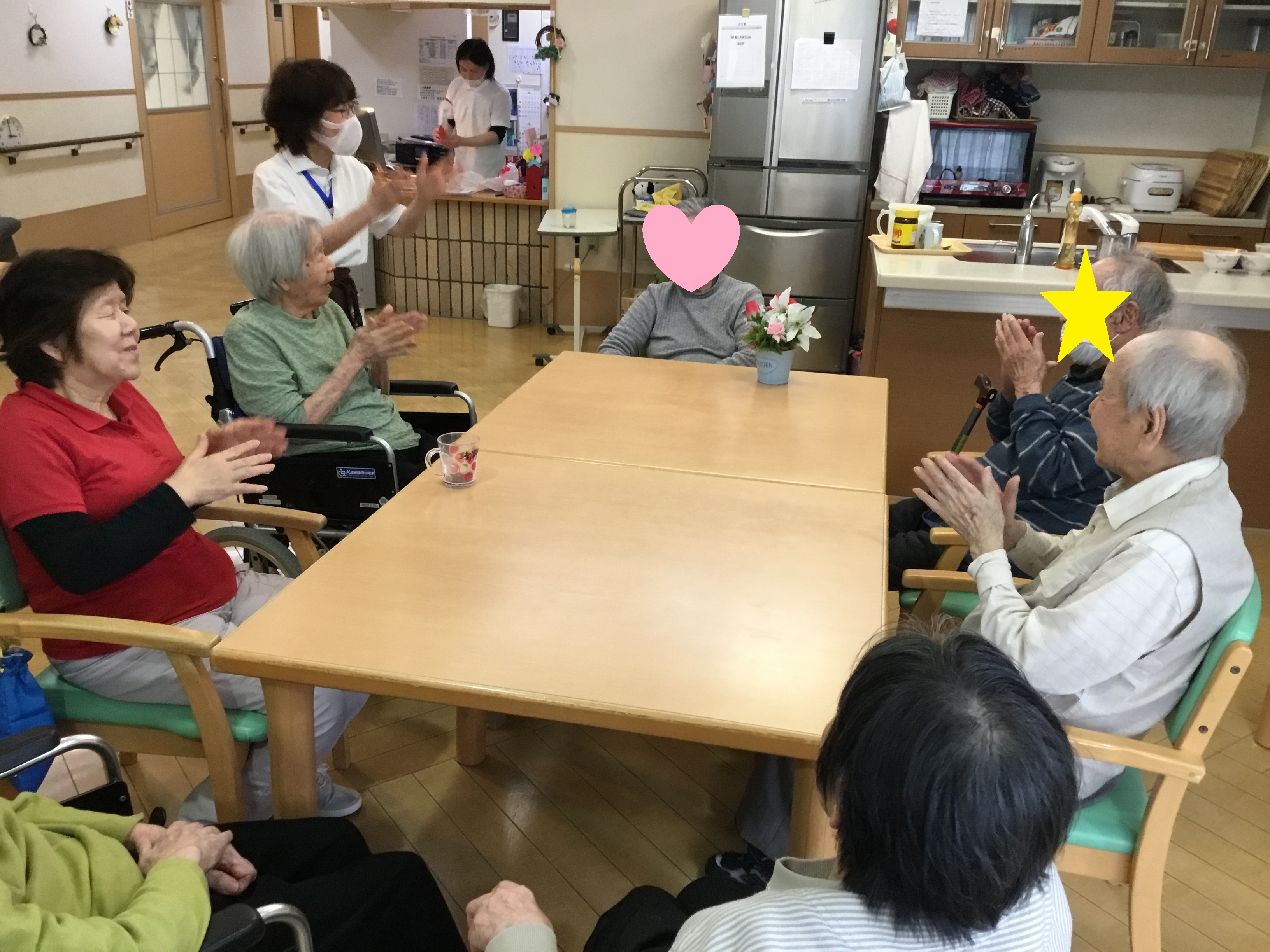 誕生日会がはじまり皆様も「おめでと?」「ええ日やな?」と拍手しておられ、誕生日の歌を皆様と一緒に歌いました!