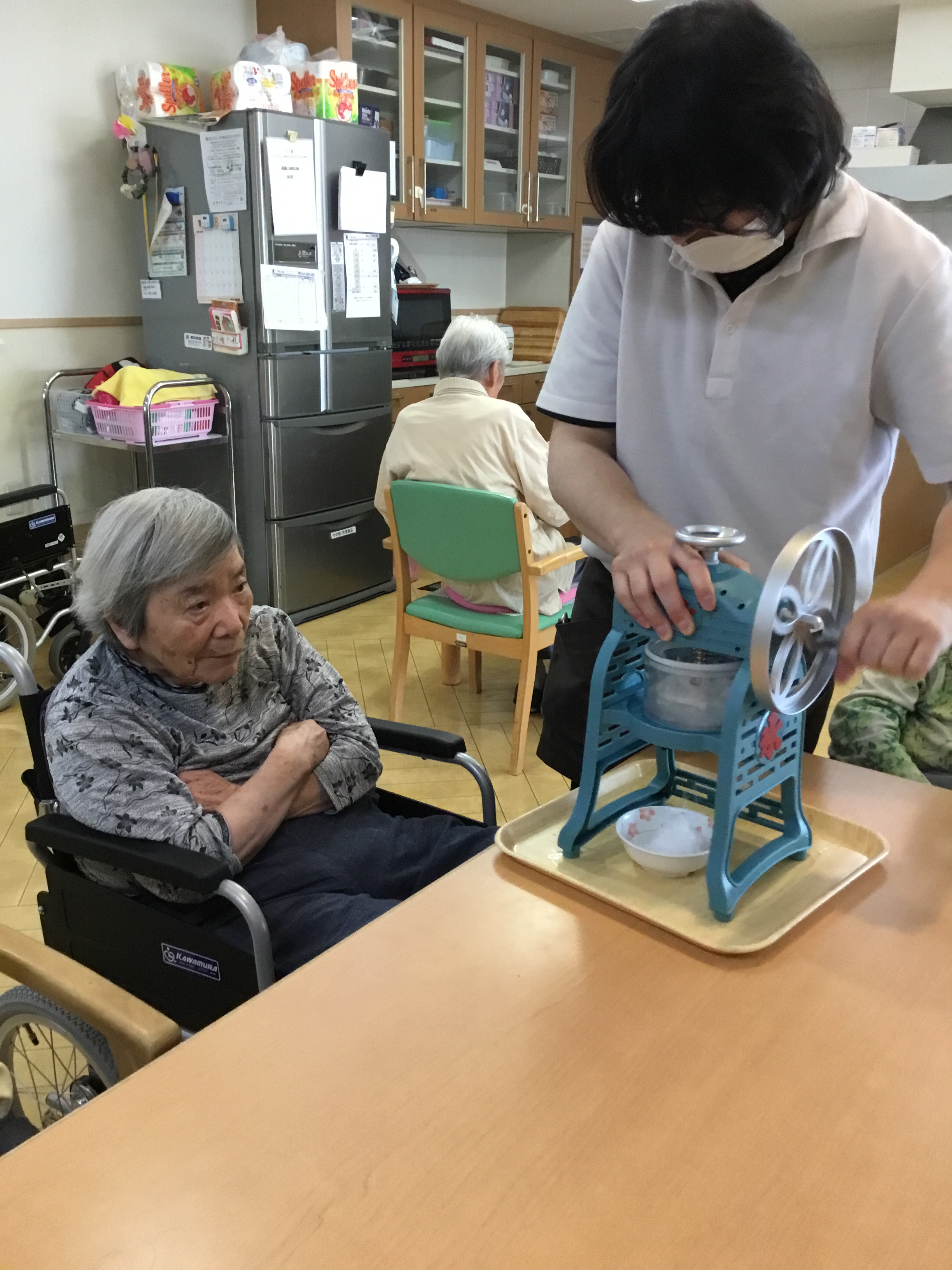 皆さんこんにちは、今日は夏に欠かせないかき氷をご利用者様と一緒に作りましたのでご紹介させていただきます!