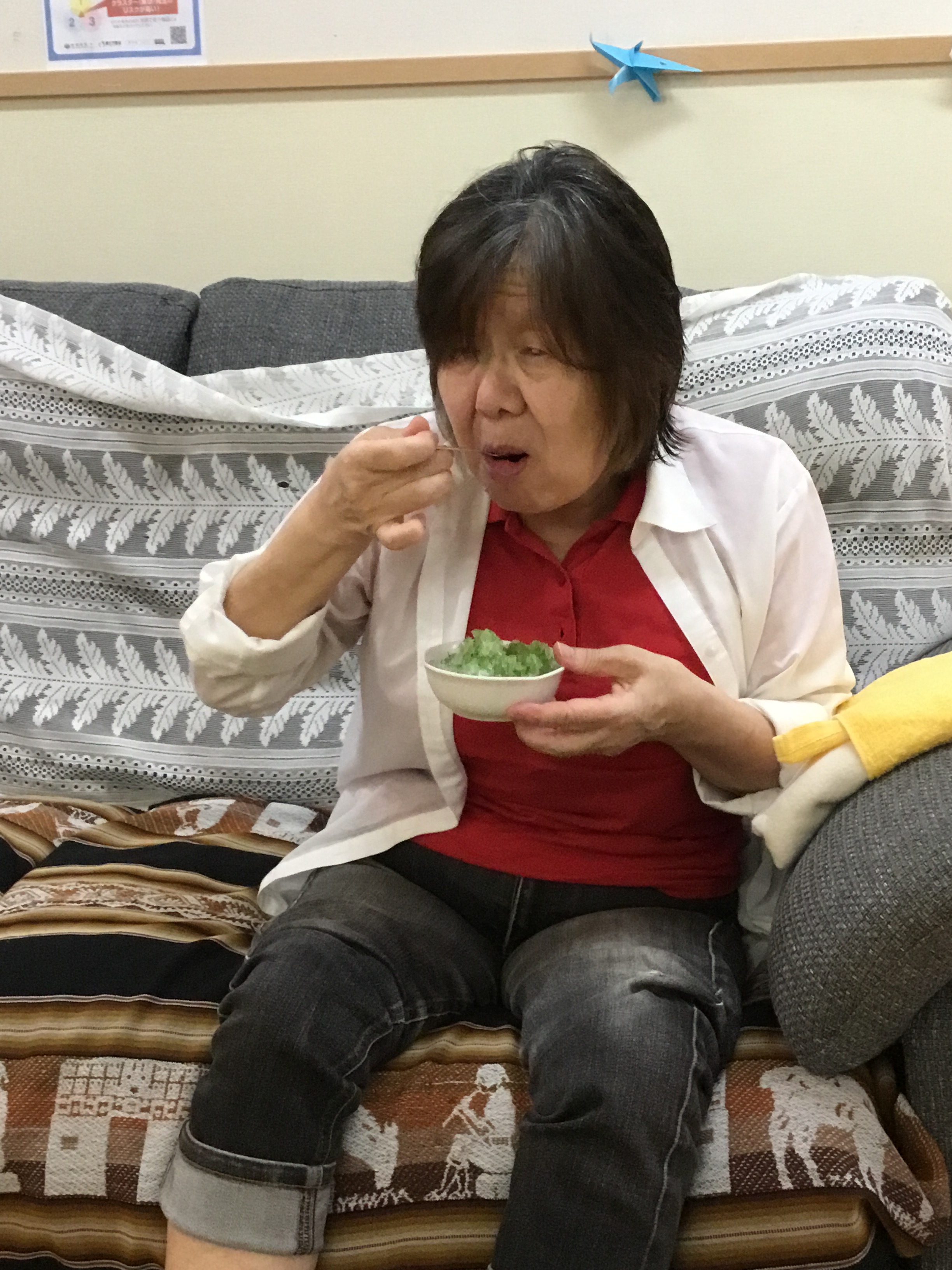 かき氷が出来て皆さん食べ始めると「冷たくて美味しいわ?」と喜んでおられました!