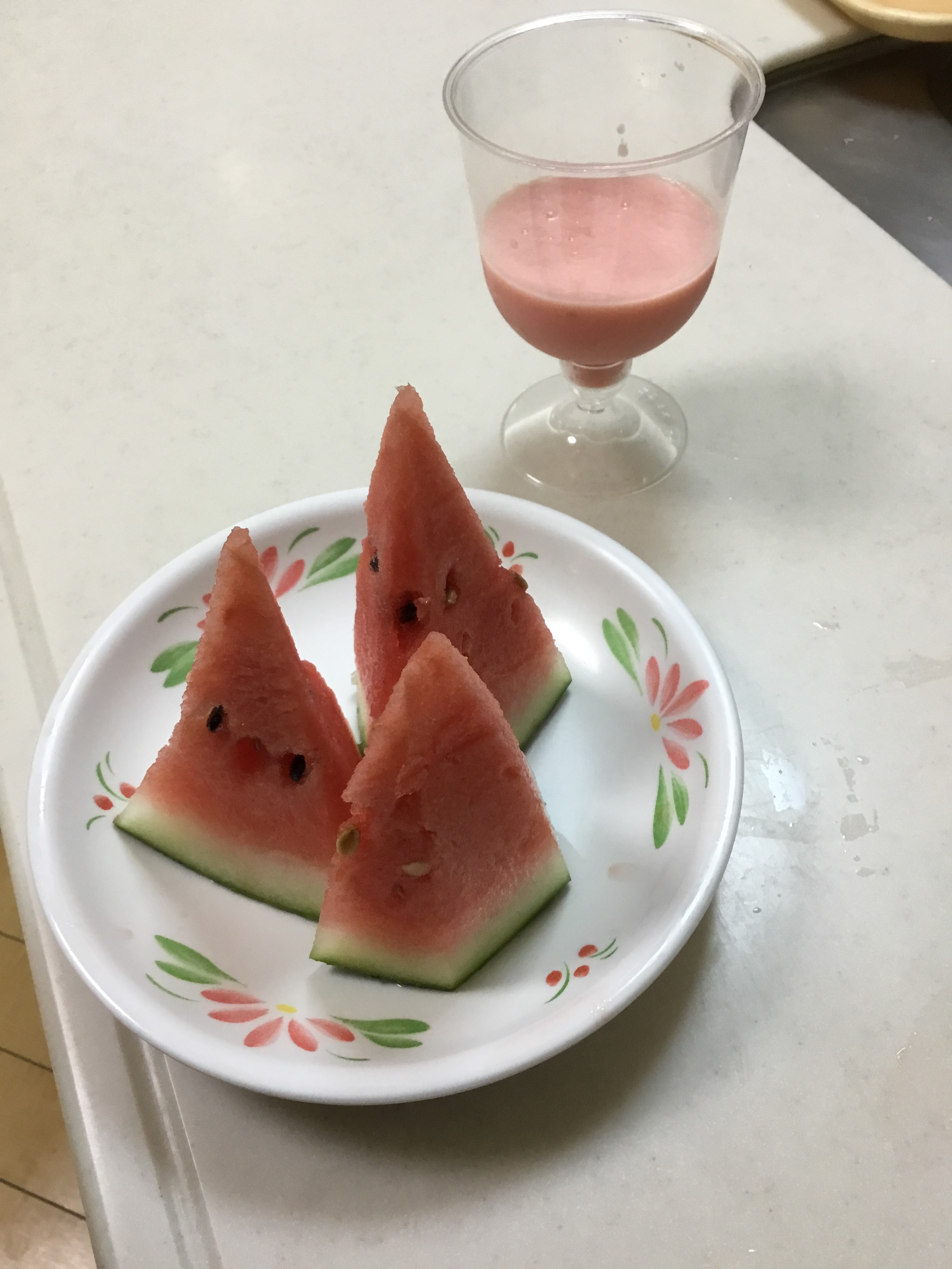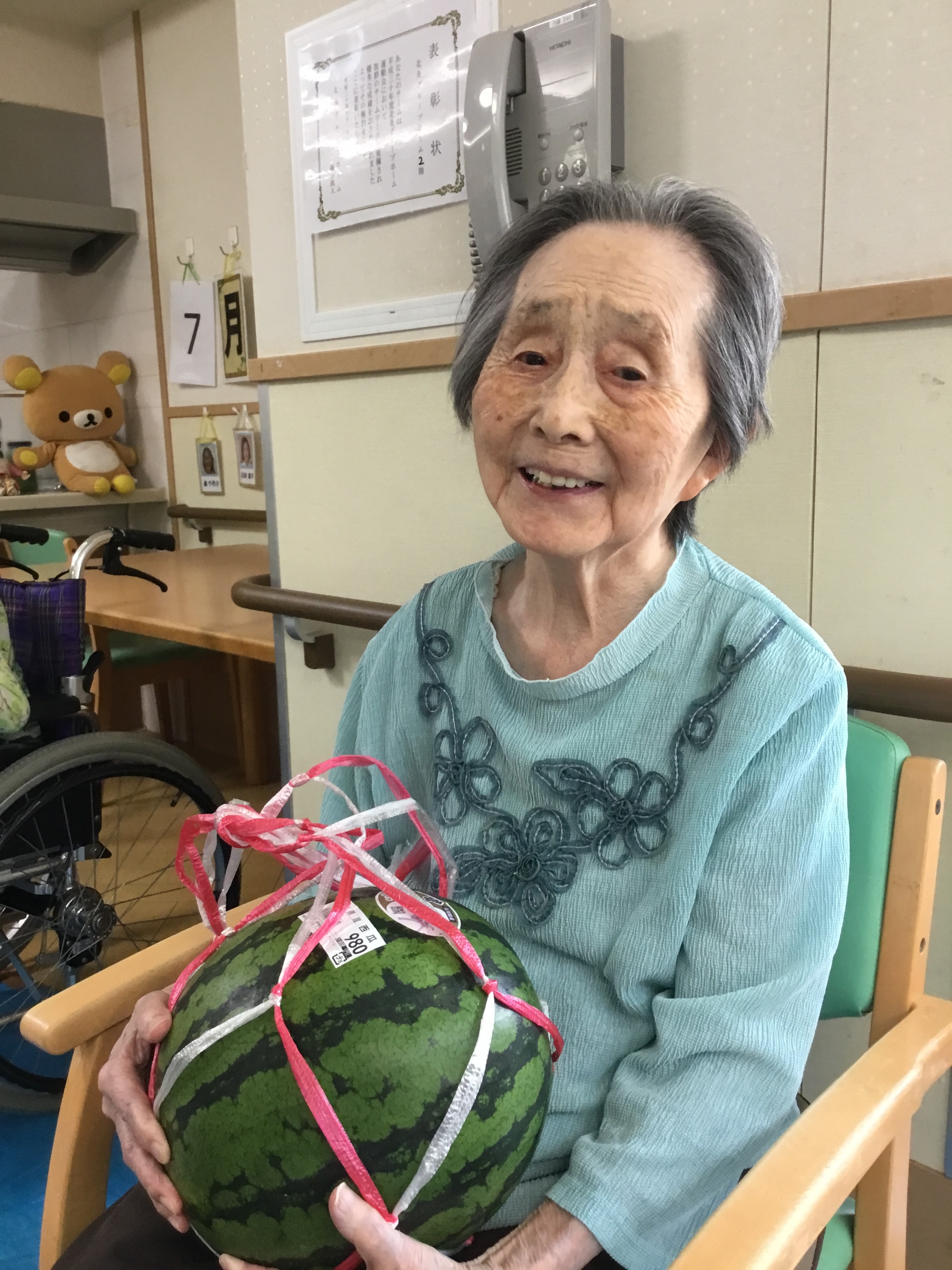 大きいスイカを持たれると「重いなー」「おいしそうやなー」と笑顔になられるご利用者様も居られました。