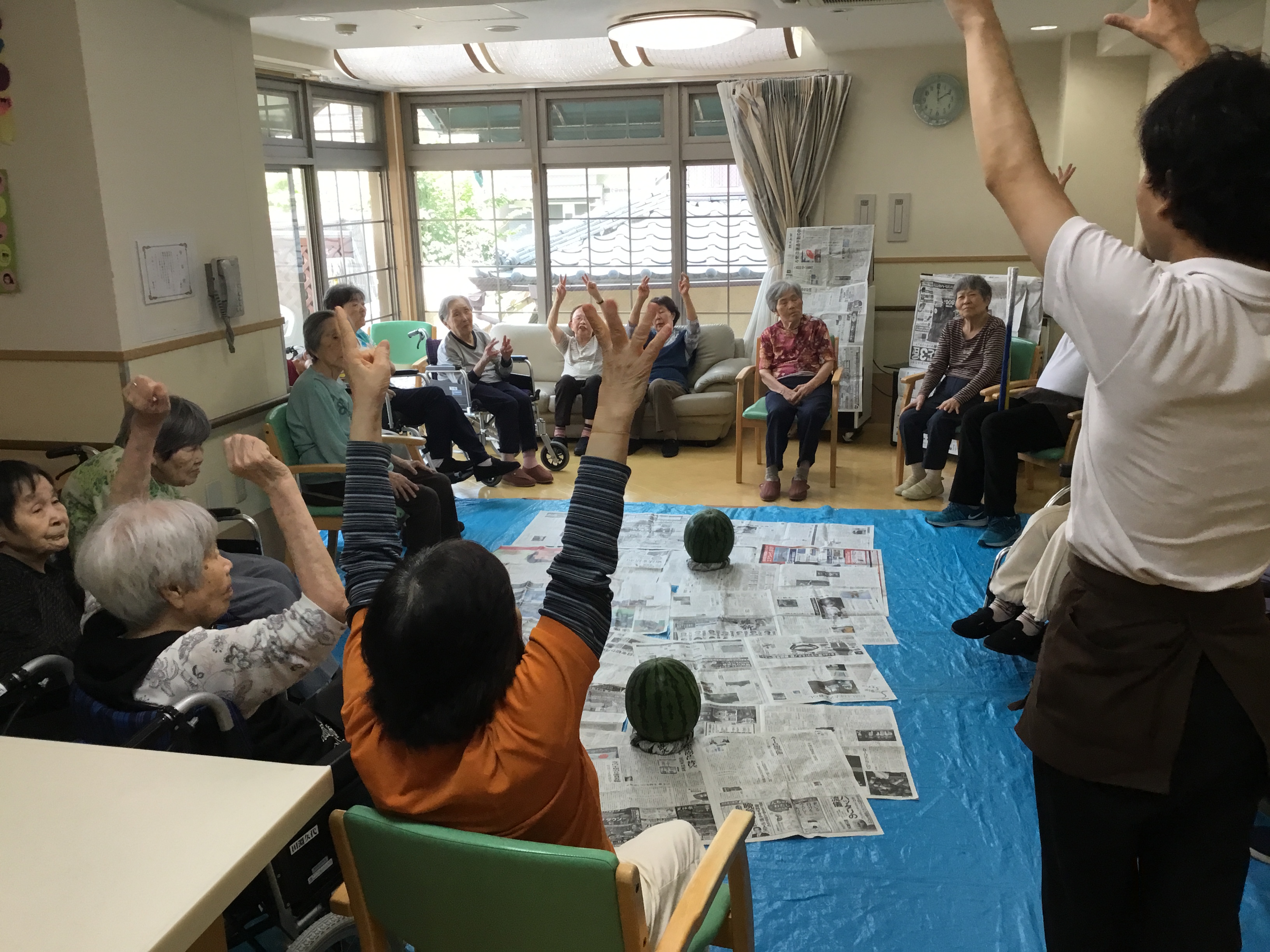 スイカが割れるとご利用者様から歓声が沸き大変喜ばれていました。