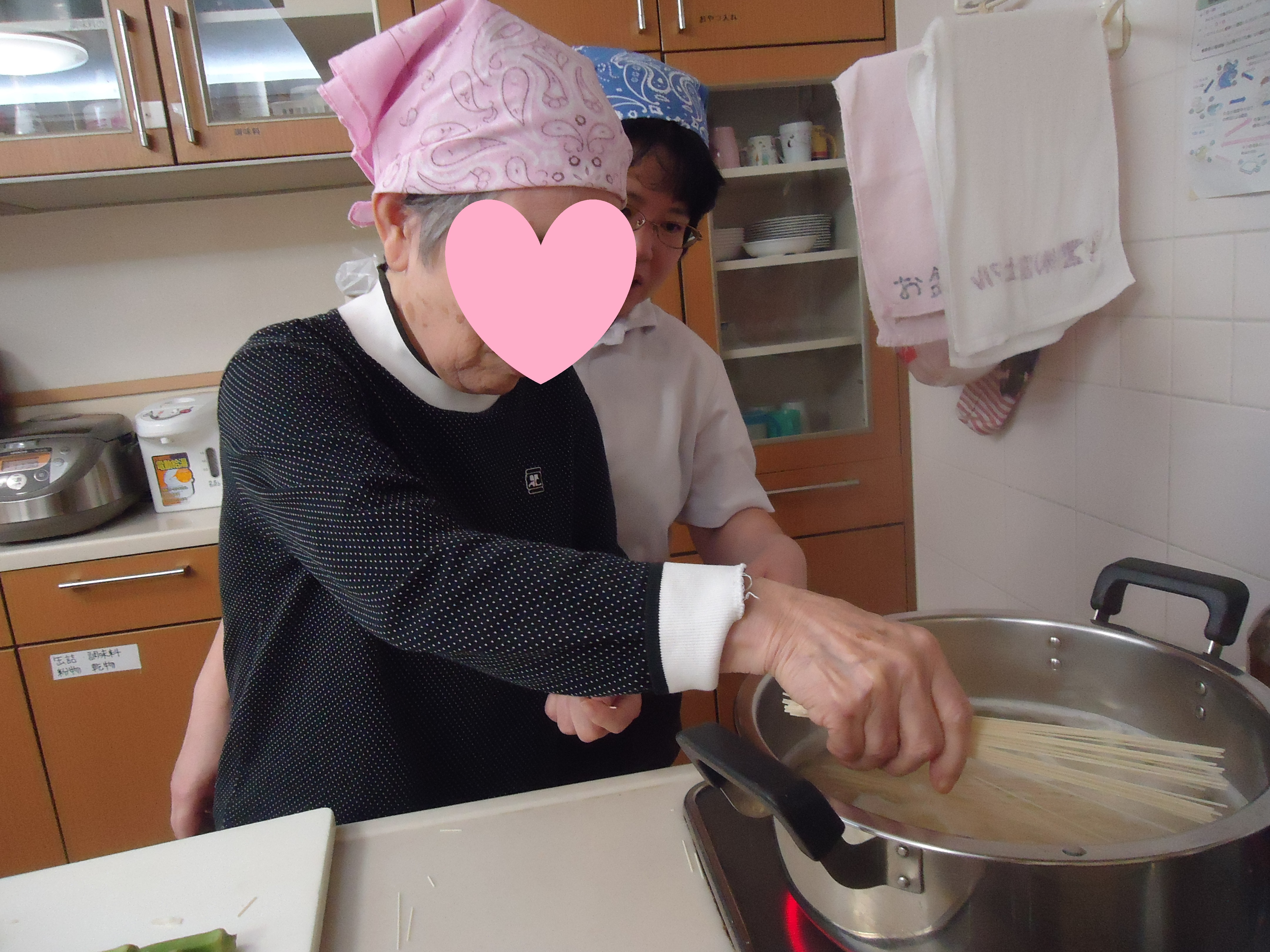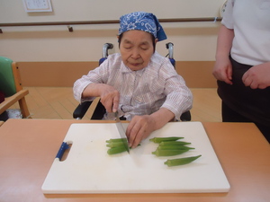そこで利用者の皆さんにもこの異常に暑い夏を乗り切っていただくため、まずは昼食の準備を手伝っていただきました。