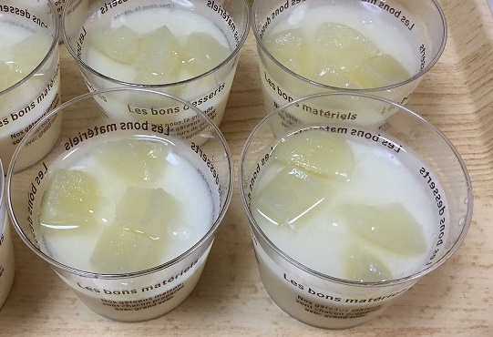 今回提供させて頂いたおやつは、桃ゼリーです。