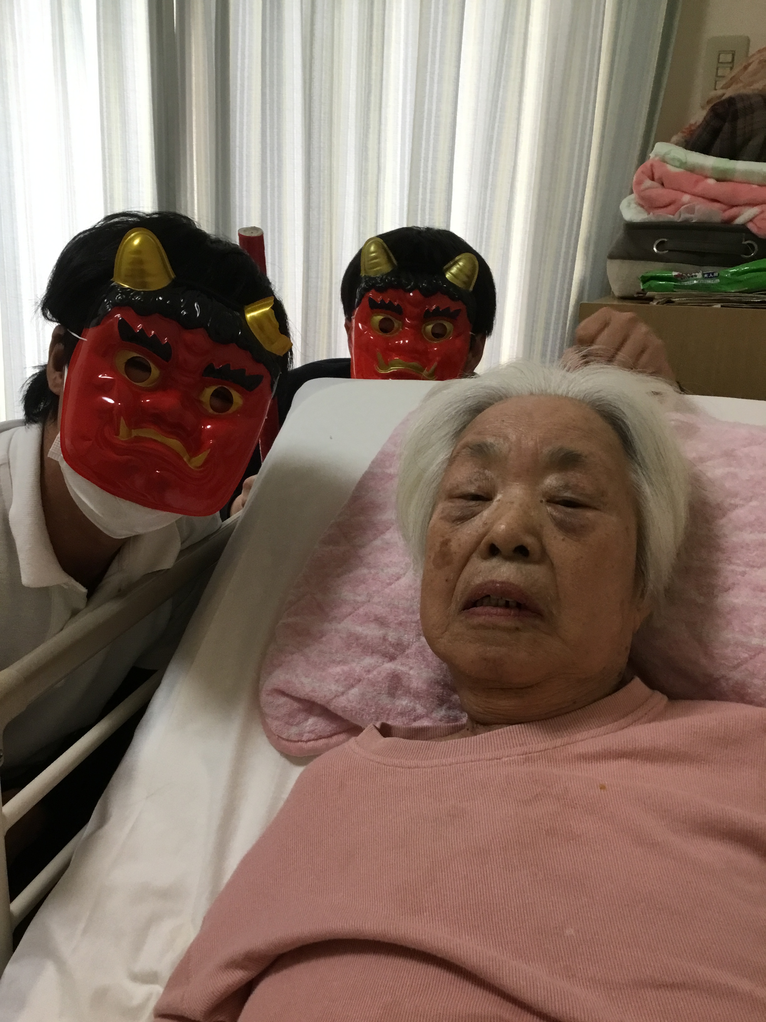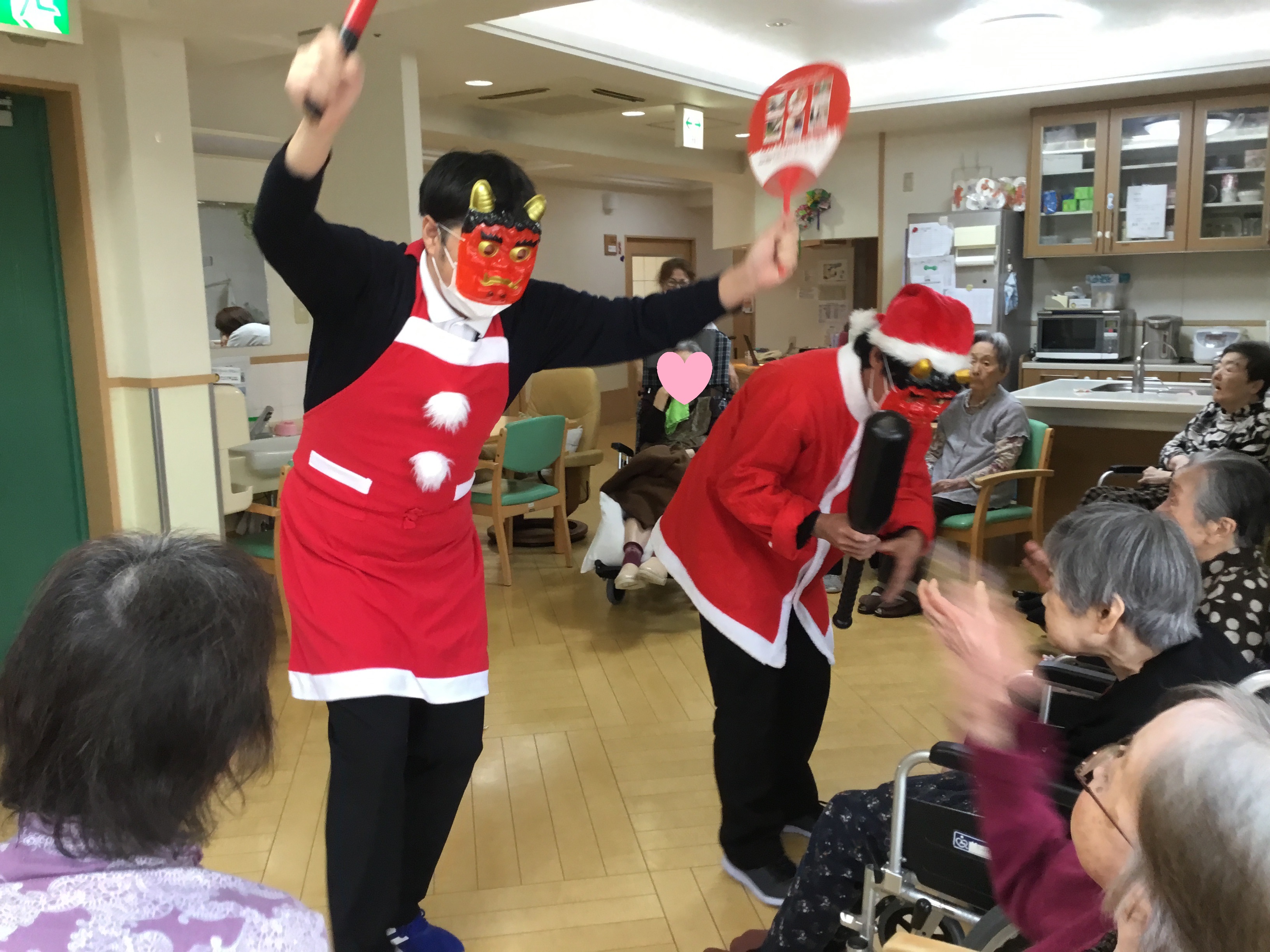ご利用者様と一年の無病息災を願うため鬼へ豆まき!