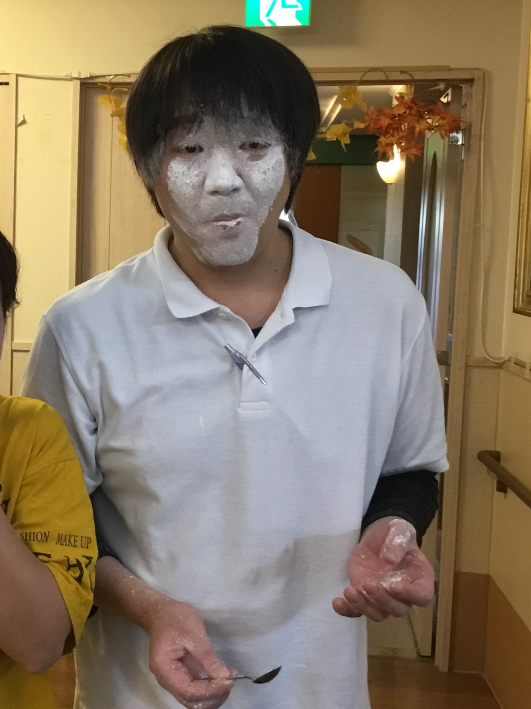 最終競技の職員対抗障害物競争では小麦粉で顔を白くさせた職員をみて利用者様・家族様方笑顔で楽しんでおられました!