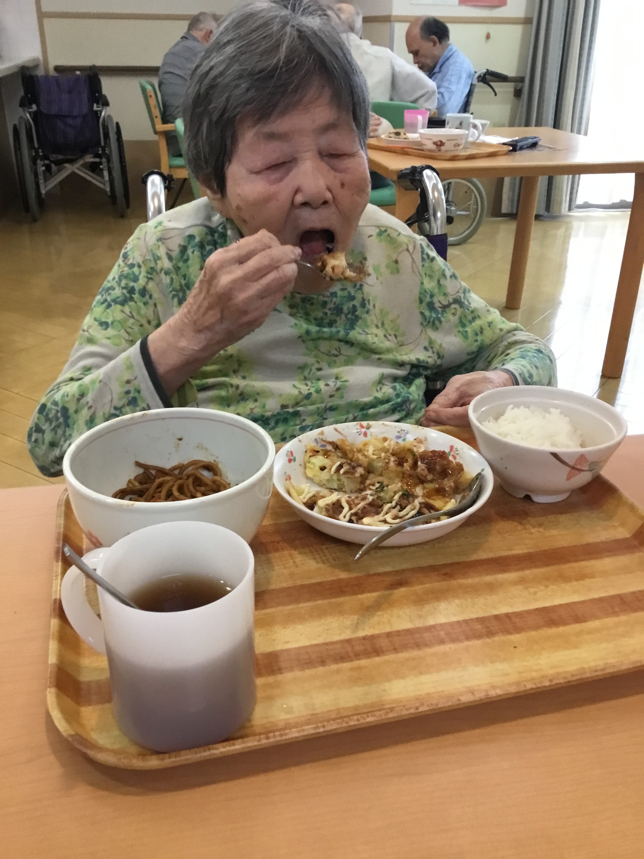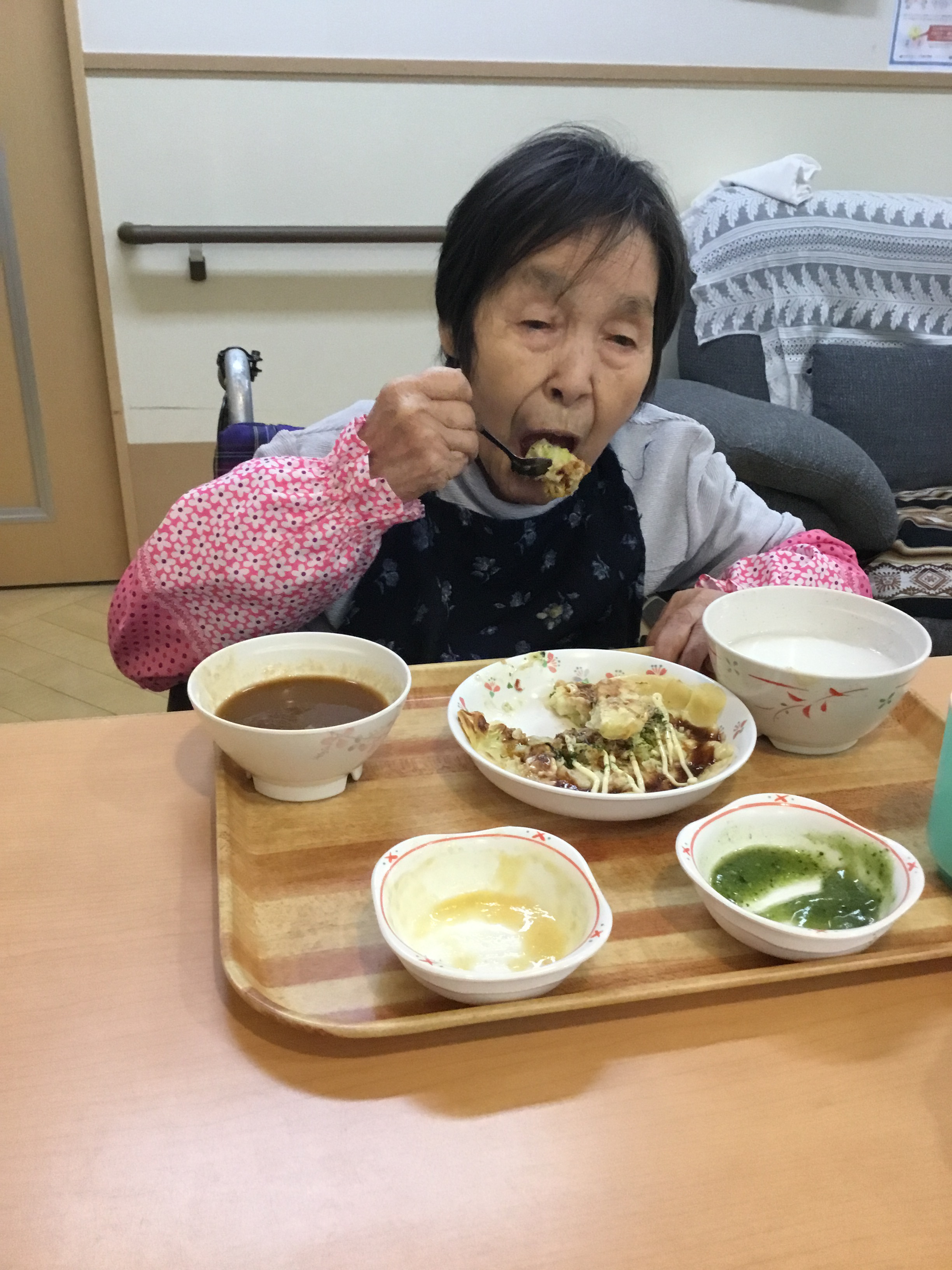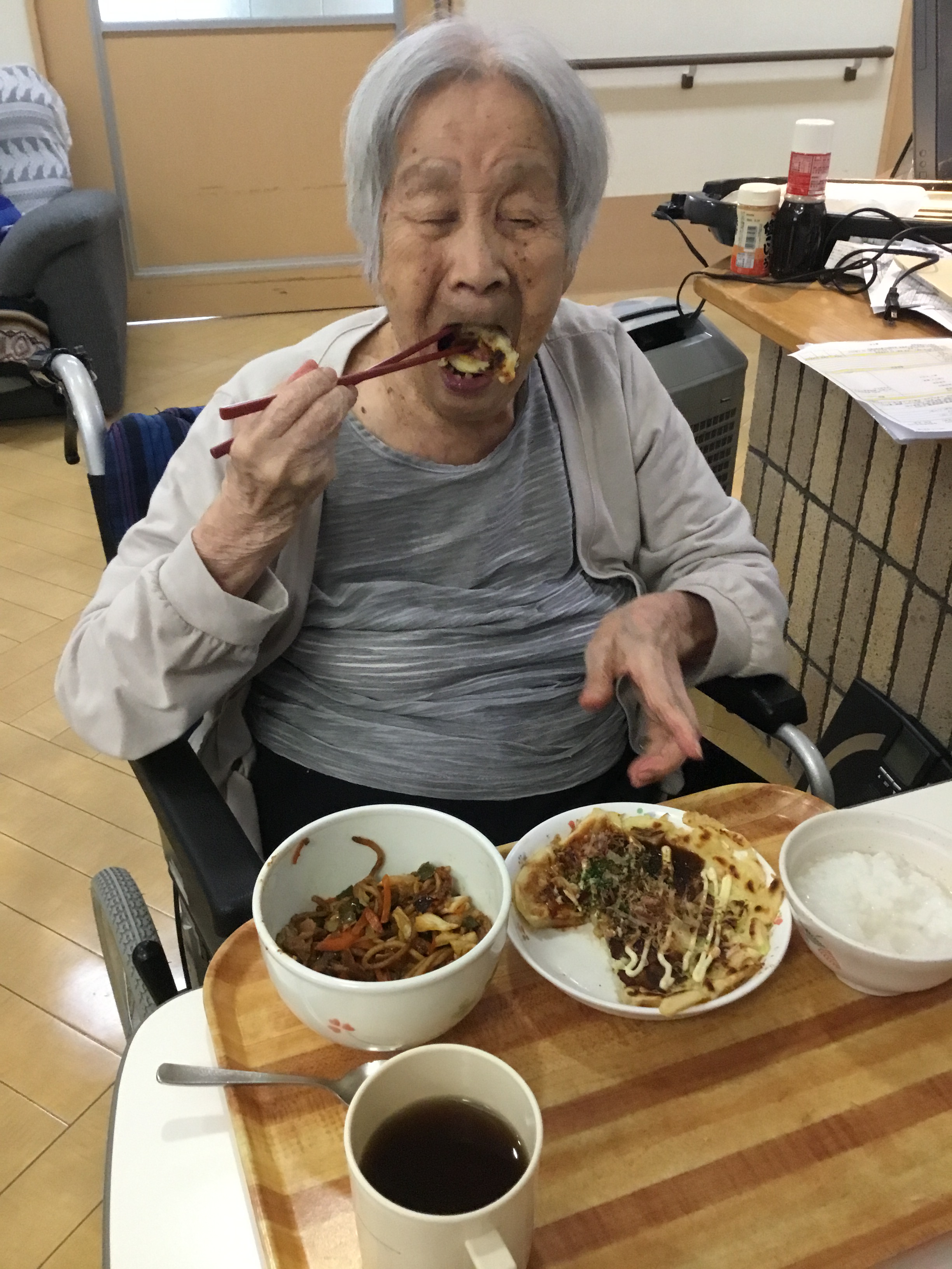 鉄板焼きと称し、ご利用者様にも少しお手伝いして頂きまして