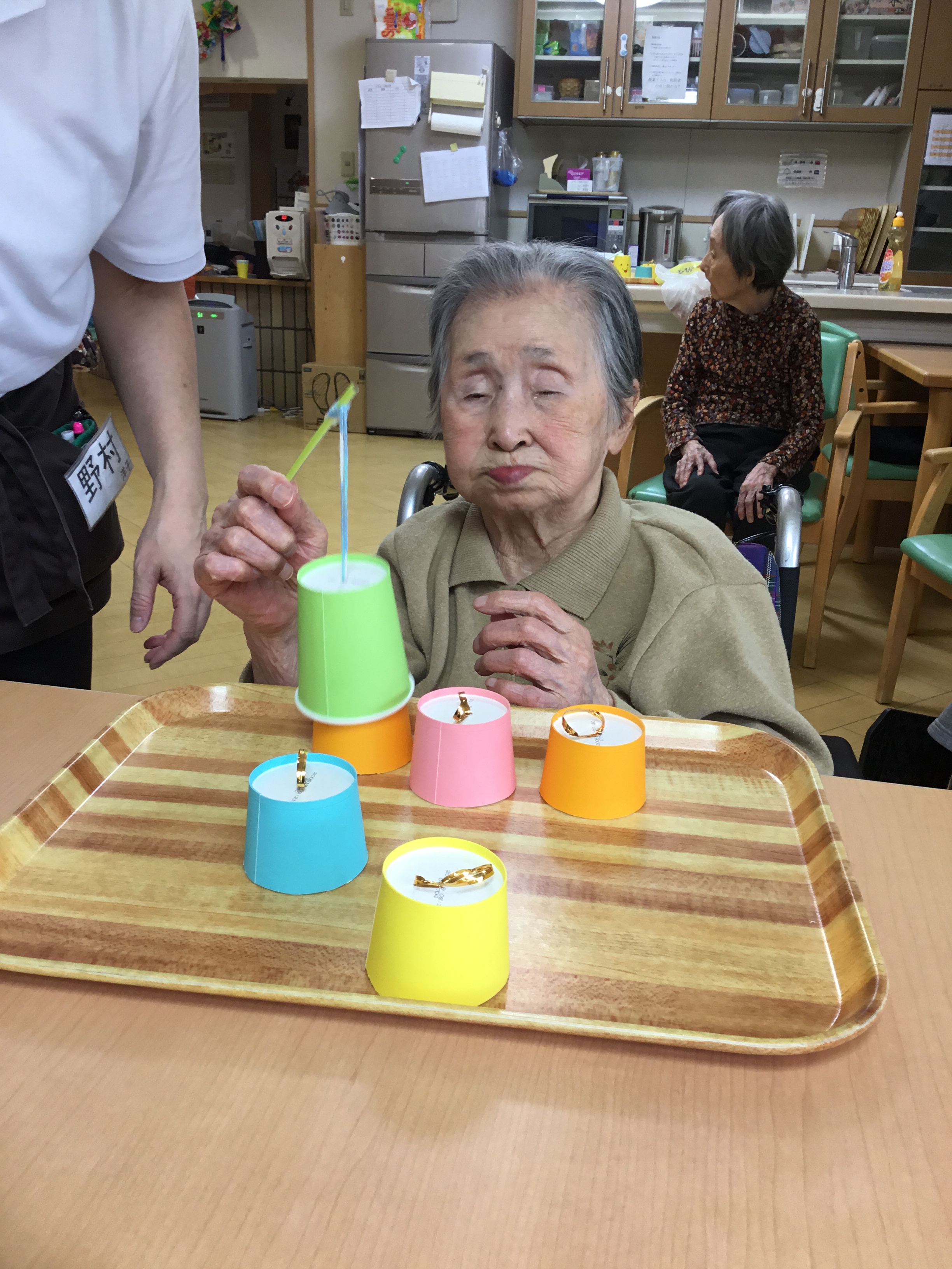 一つ目のゲームはこちら...紙コップ釣りゲーム☆