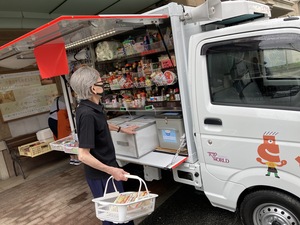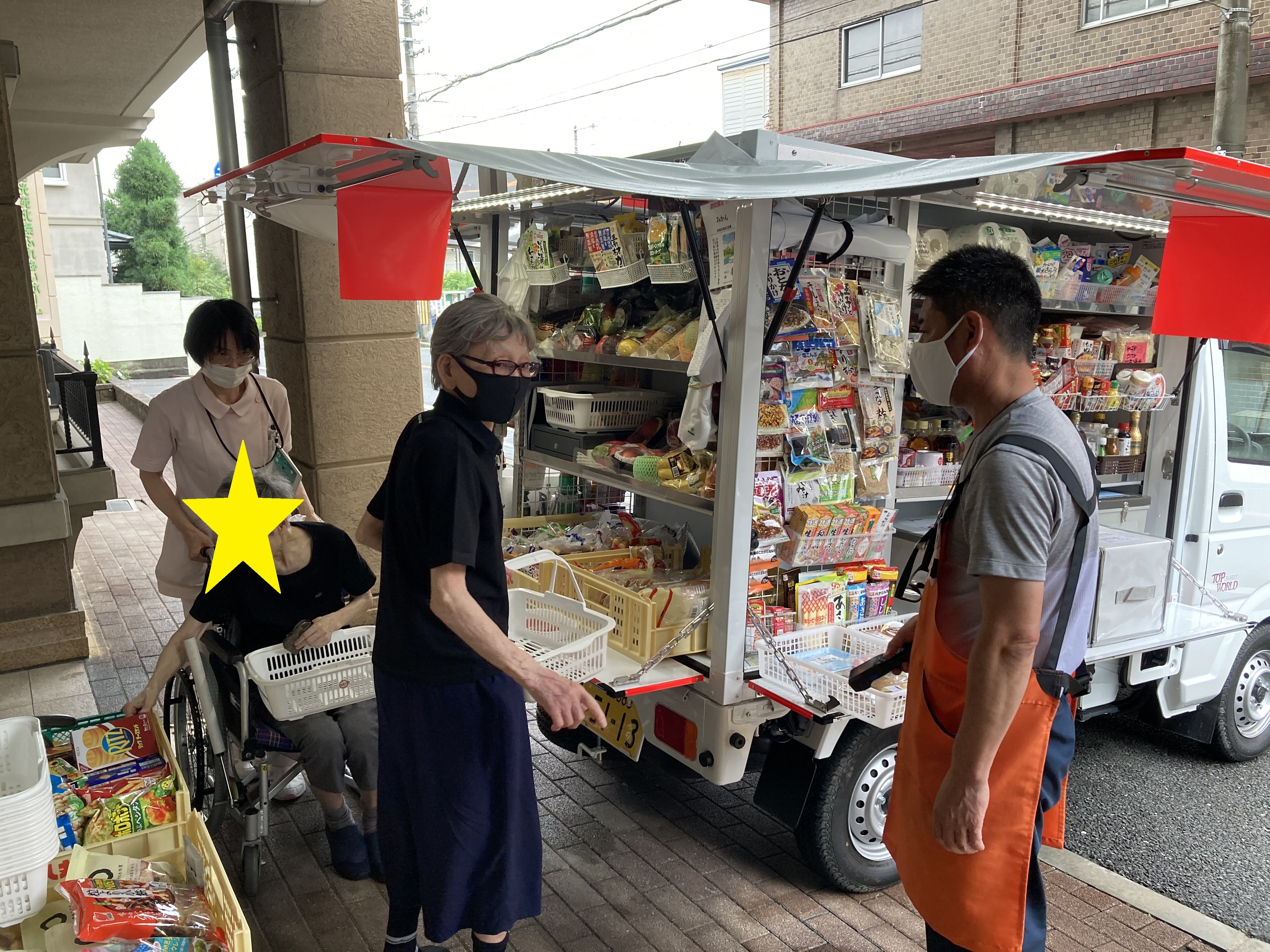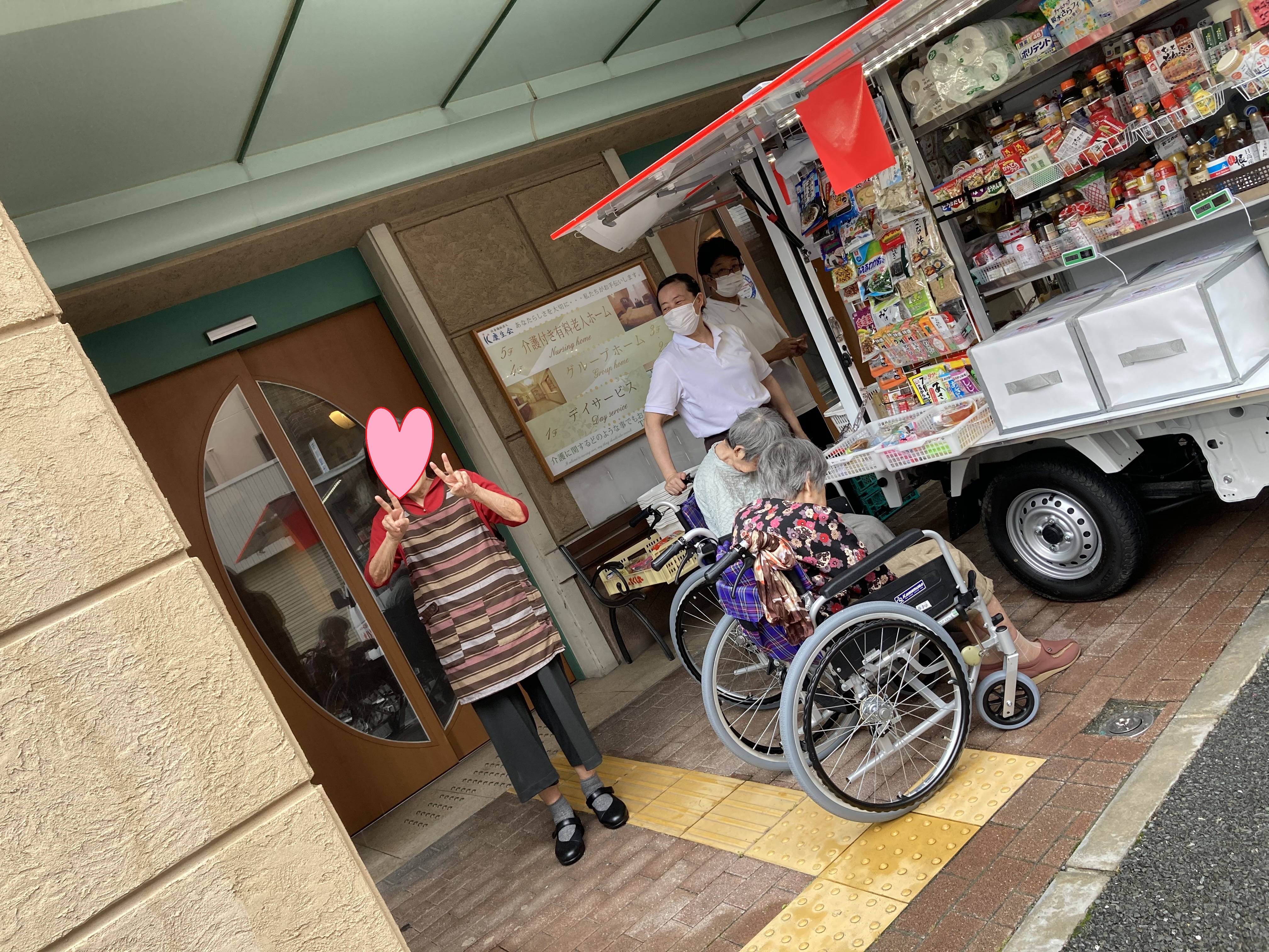 皆様こんにちは!! 気付けば7月が終わり、 8月に入りました◎ 最近は日差しも強く、本当に暑い日が続いていますね...。 マスクを着用していることもあり、 熱中症のリスクもかなり高くなっているそうです。 外では極力日陰に入るなどして 熱中症にもお気を付け下さい。 ------------------------------------------------- さて、本日は7月から始まりました 移動スーパーでの様子について お伝えさせて頂きます♪ IMG_1043.JPG Kトラックにたくさんの品物が勢ぞろい!! おかしやパン、果物はもちろん お惣菜なども売っています! 品数が多すぎて目移りしちゃいます(笑) IMG_1044.JPGのサムネール画像 「何でもあるな?!」「迷うわ!!」と とっても楽しそうに買い物されていました☆ IMG_1051.JPG ご利用者様の買い物だけでなく、 職員の買い物にも利用させていただいています(笑) お昼ご飯を買い足したり、主婦の方は野菜などを購入していました! 毎週【水】曜日に来て下さっています♪ (緊急事態宣言中はどうなるか不明ですが...。) なかなか外出する機会が少ないですが、 こういった形で少しでも楽しんで頂ければと思います★