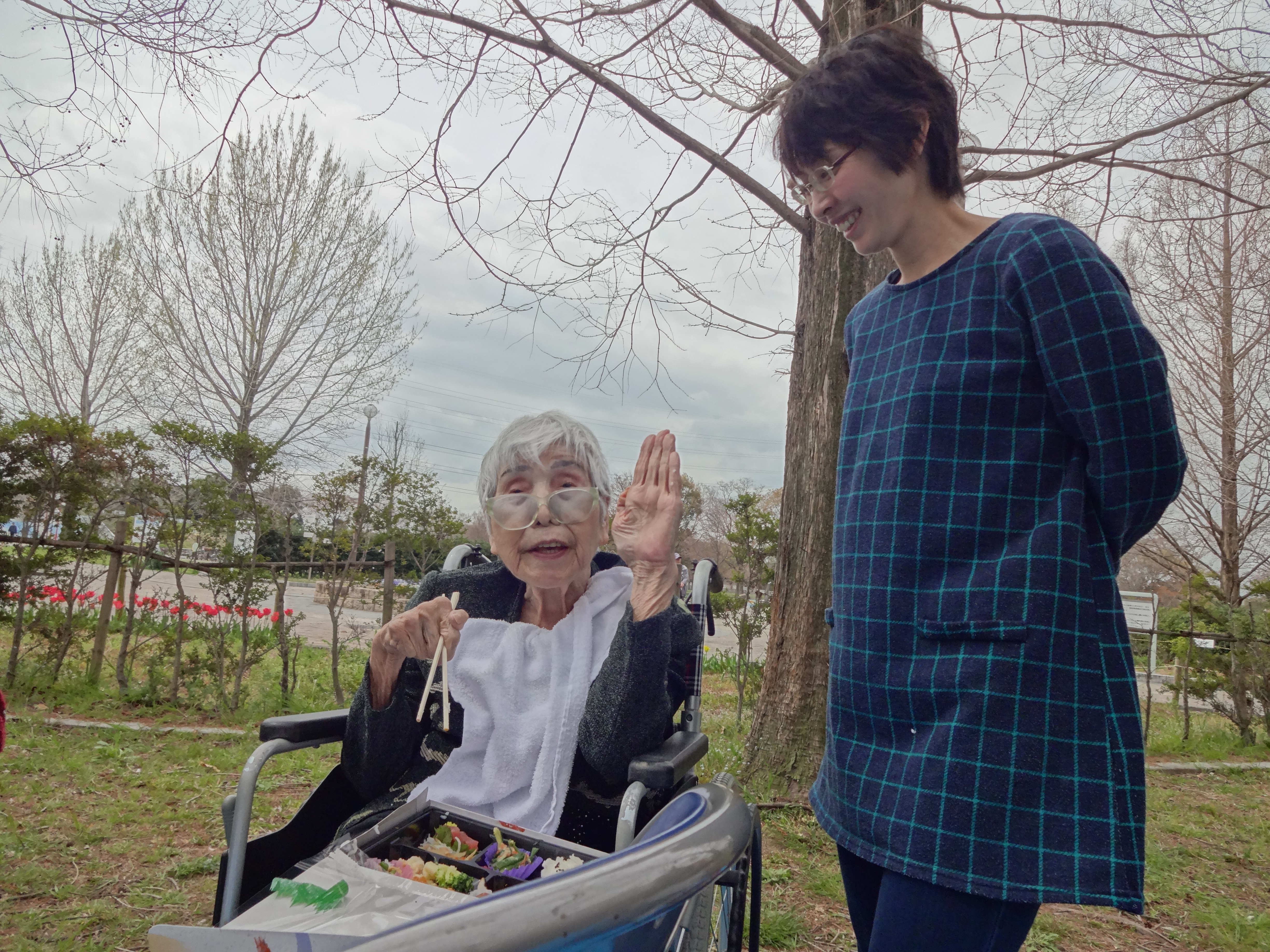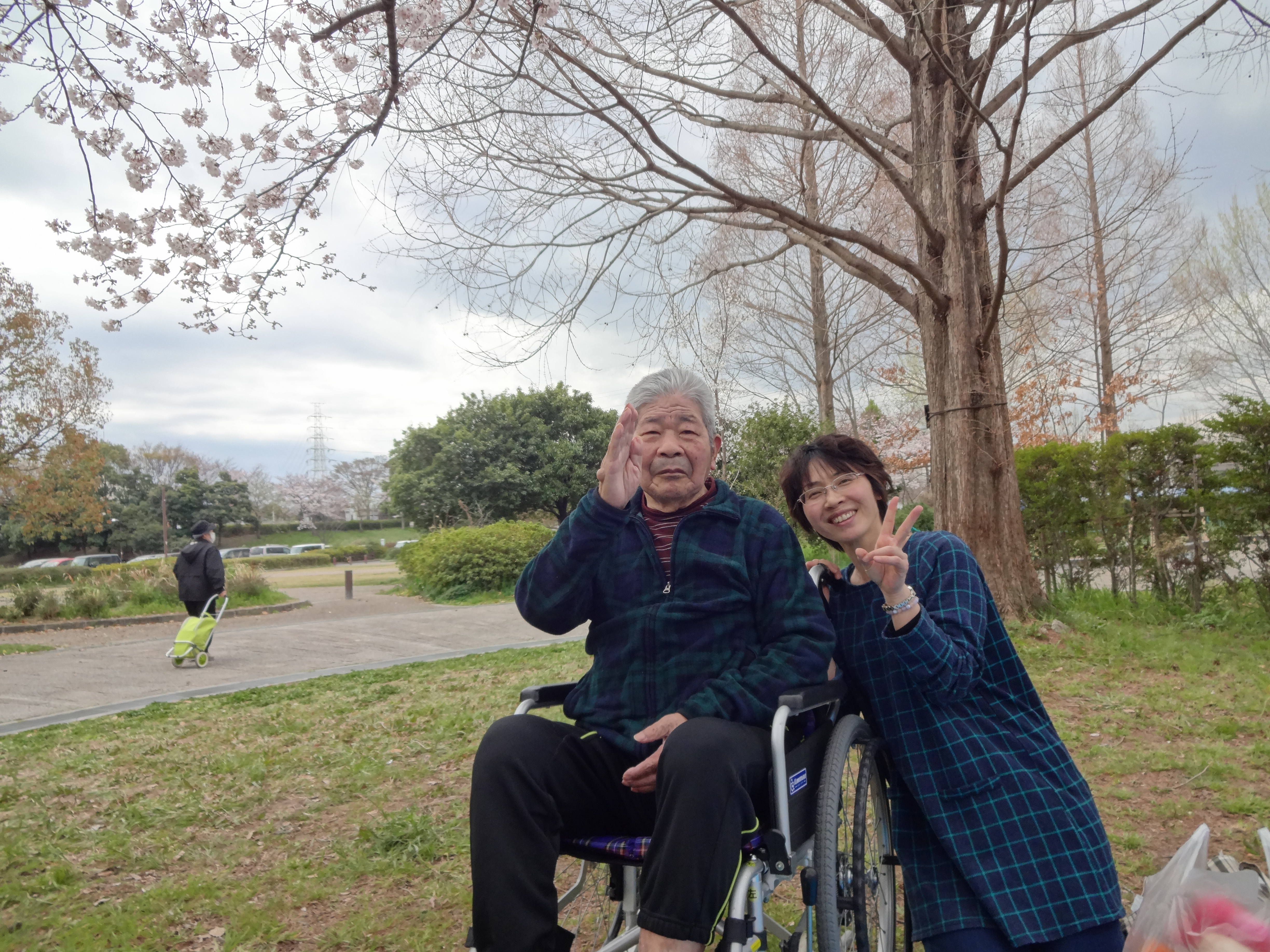 ☆お花見☆ 2017 4/10 スタッフブログ シニアホーム飯盛 2017年4月10日 こんにちは!(^^)!4月からブログ担当をさせて頂きます、林です。よろしくお願い致します! さて、先日はお花見をしに深北緑地へ行きました☆車内から、皆様「楽しみやわぁ」とワクワクされているご様子でした! 到着すると桜は満開に近く、とても見頃でした(^^♪ 桜を見ながら、お弁当を食べて写真をパシャリ!!とても良い笑顔ですっ!(^^)! 「綺麗やわぁ」「また、来年も見に行きたい」といった声もあり、大変嬉しく思います!ぜひ、来年も行きましょう☆ スタッフブログ シニアホーム飯盛