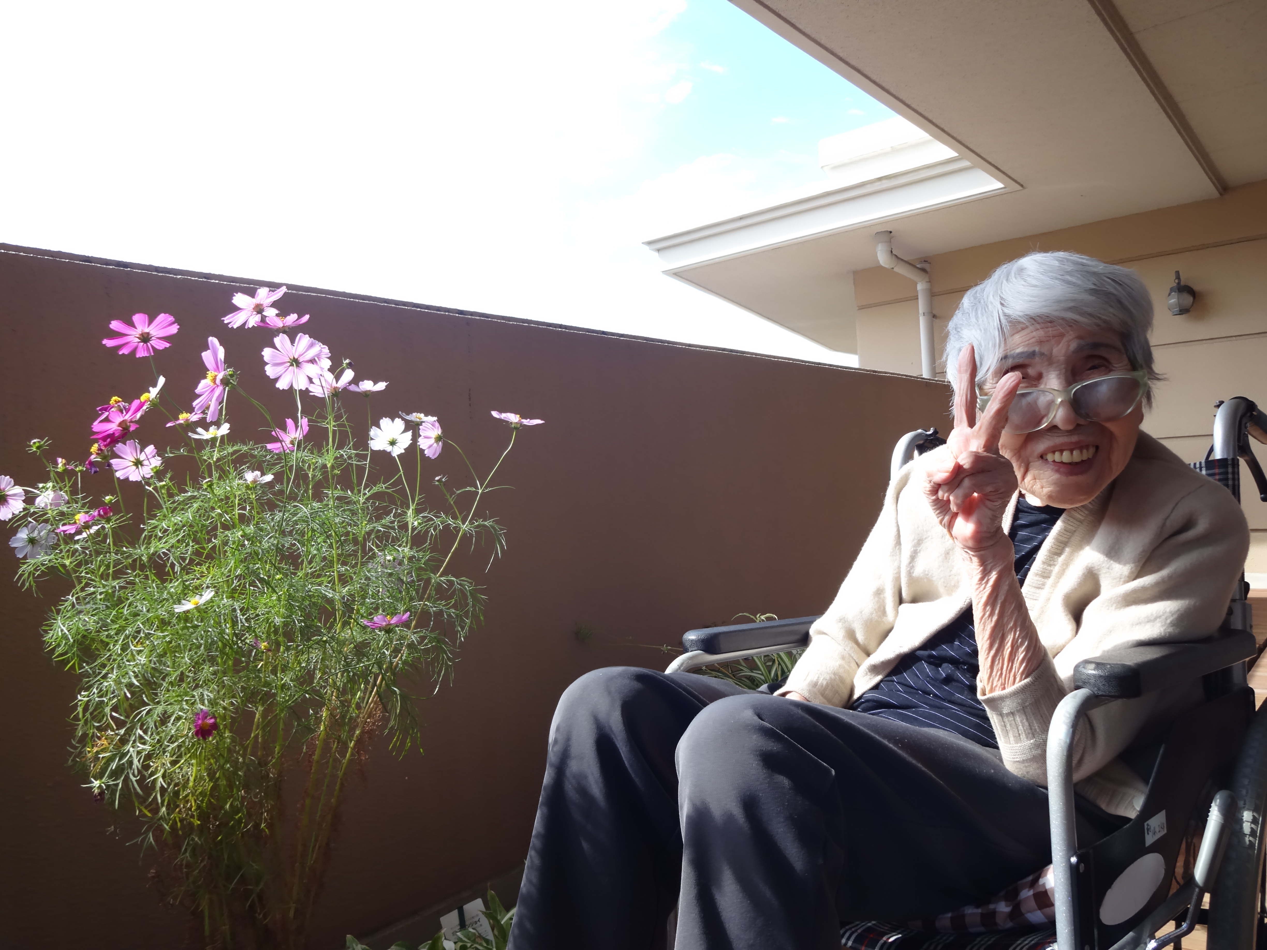 ☆コスモス☆ 2016 10/14 スタッフブログ シニアホーム飯盛 2016年10月14日おはようございます*^^)v ブログ担当野村です!朝晩は寒くなり、すっかり秋の季節になりました。昼間との寒暖差もあるので体調崩されないようにしてくださいね。 シニアホーム飯盛のベランダではコスモスが綺麗に咲いています。昼間の暖かい時間に入居者さまも出てこられ、コスモスや秋空を見て「きれいねぇ?♪♪」と喜ばれておられます☆ スタッフブログ シニアホーム飯盛