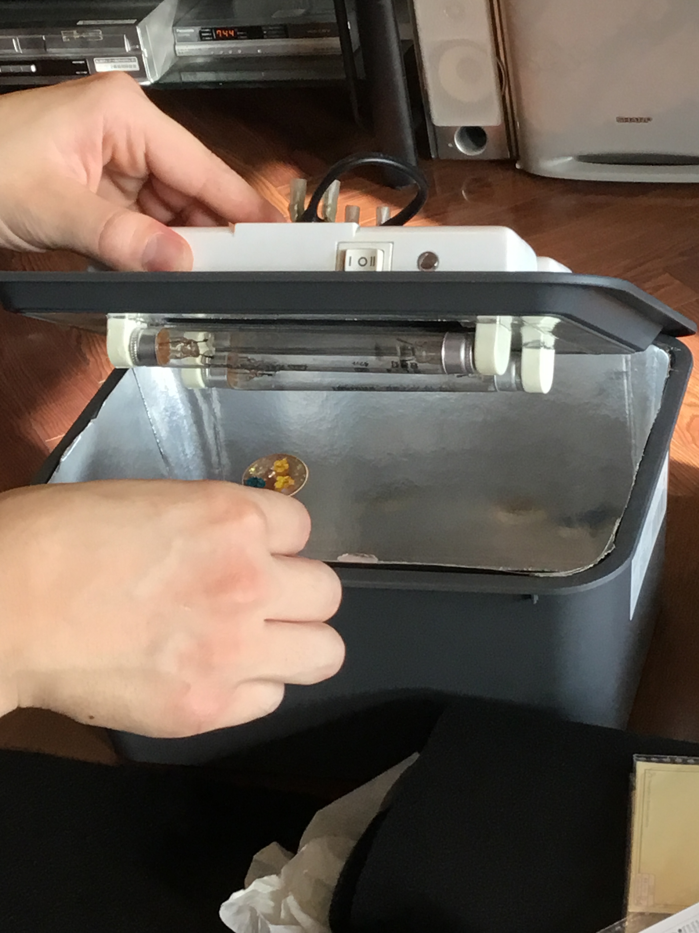 金属の枠にレジン液を流し入れて、