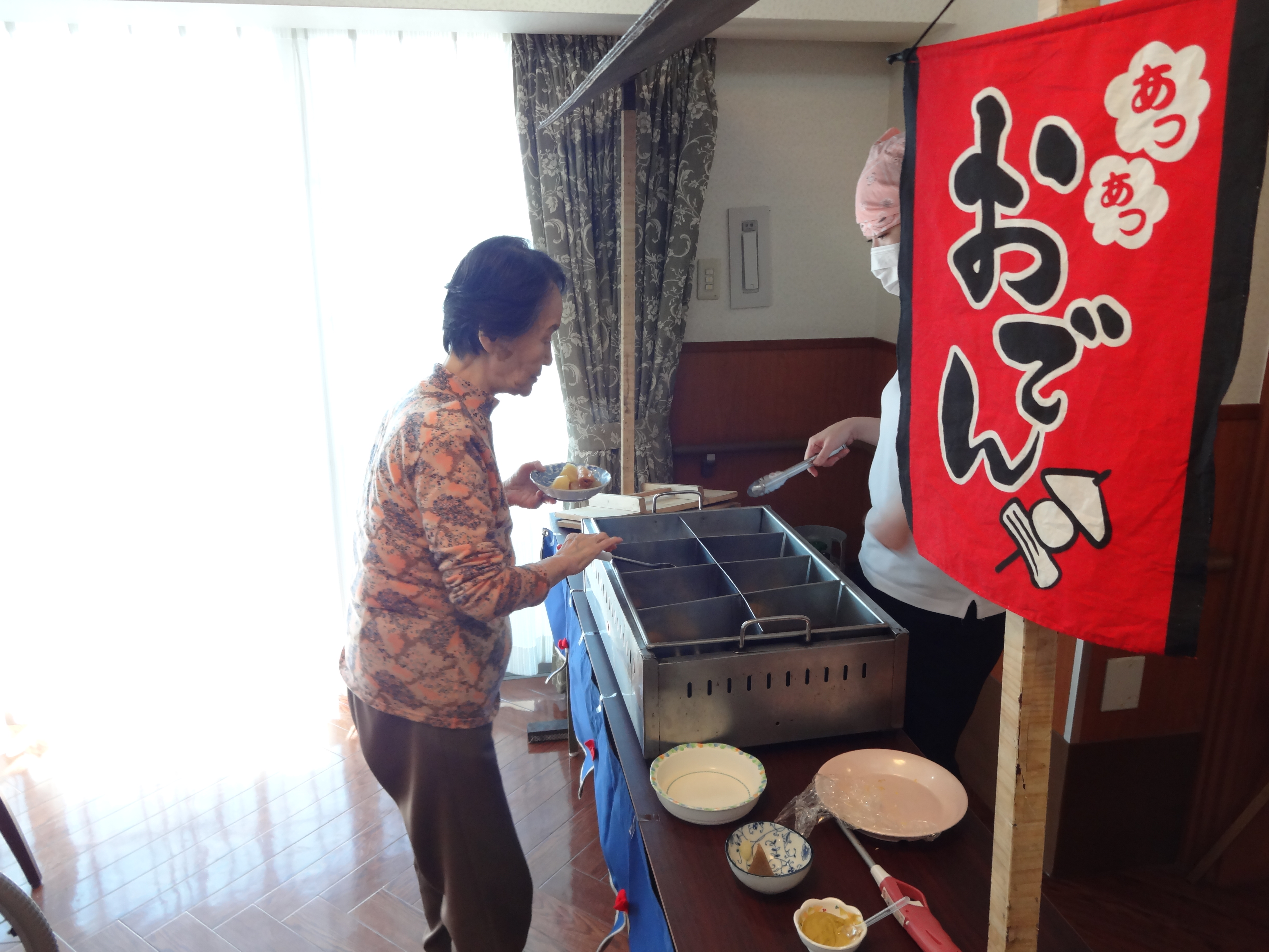 あったかいおでんが食べられると入居者様からも好評で、続々とおかわりされていました(*^_^*)