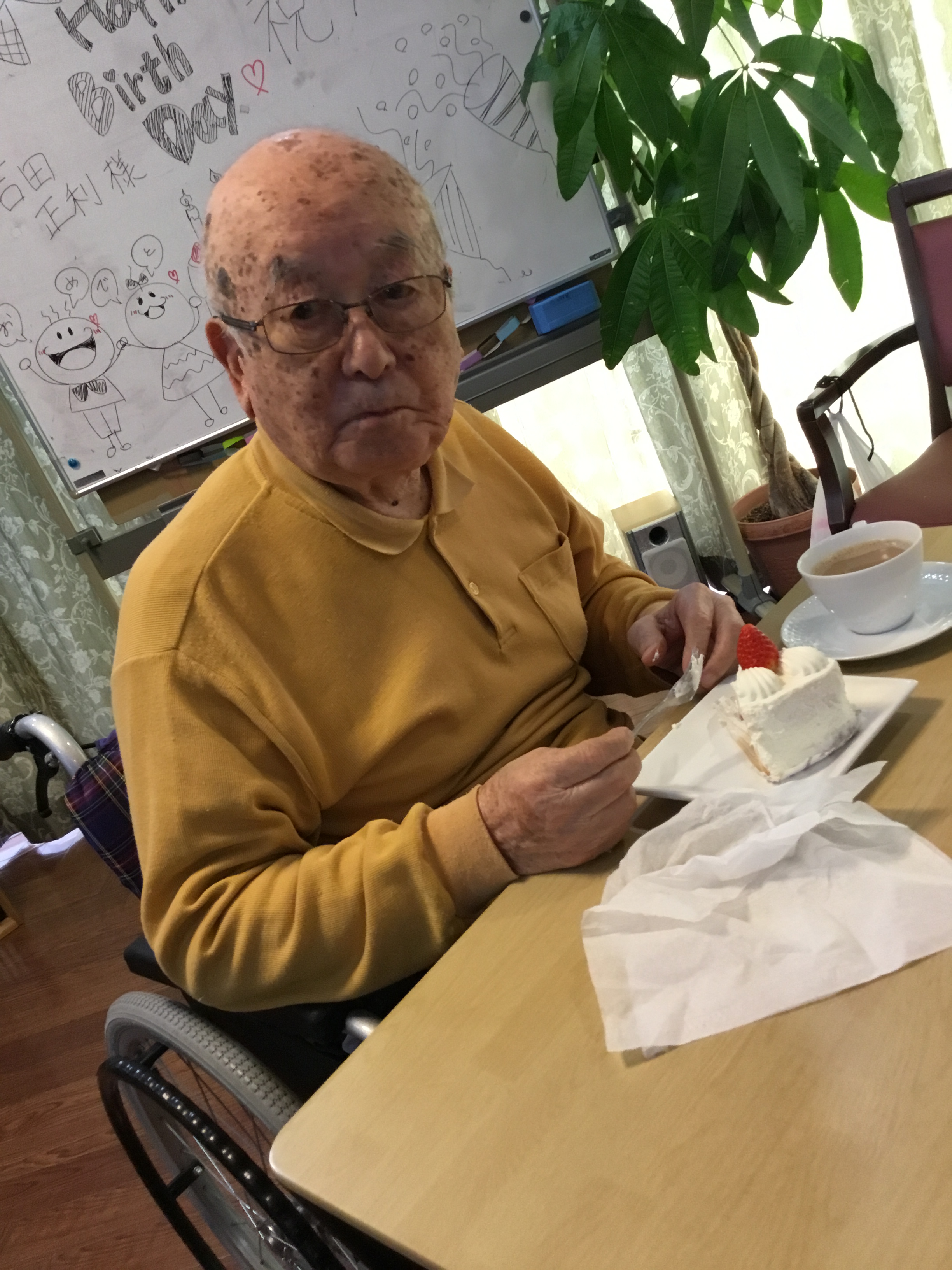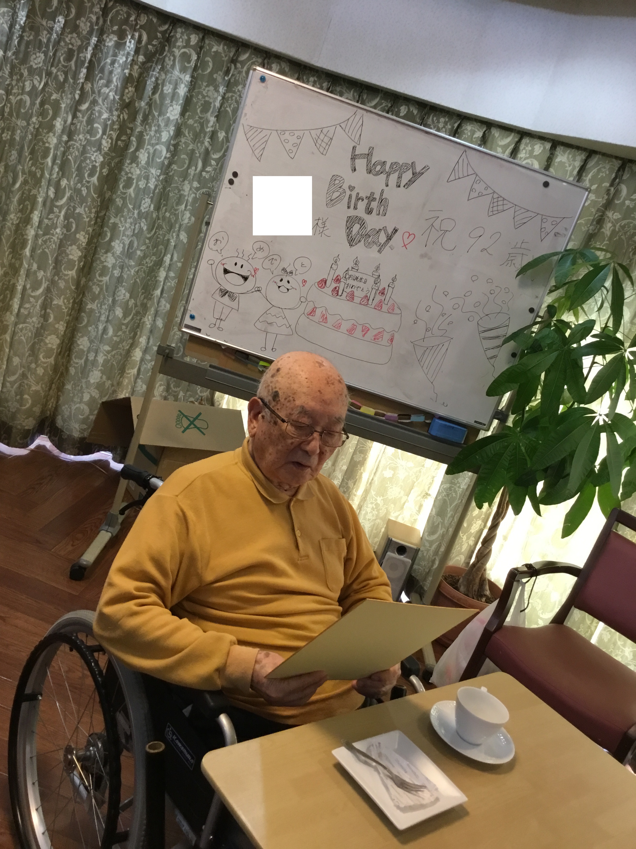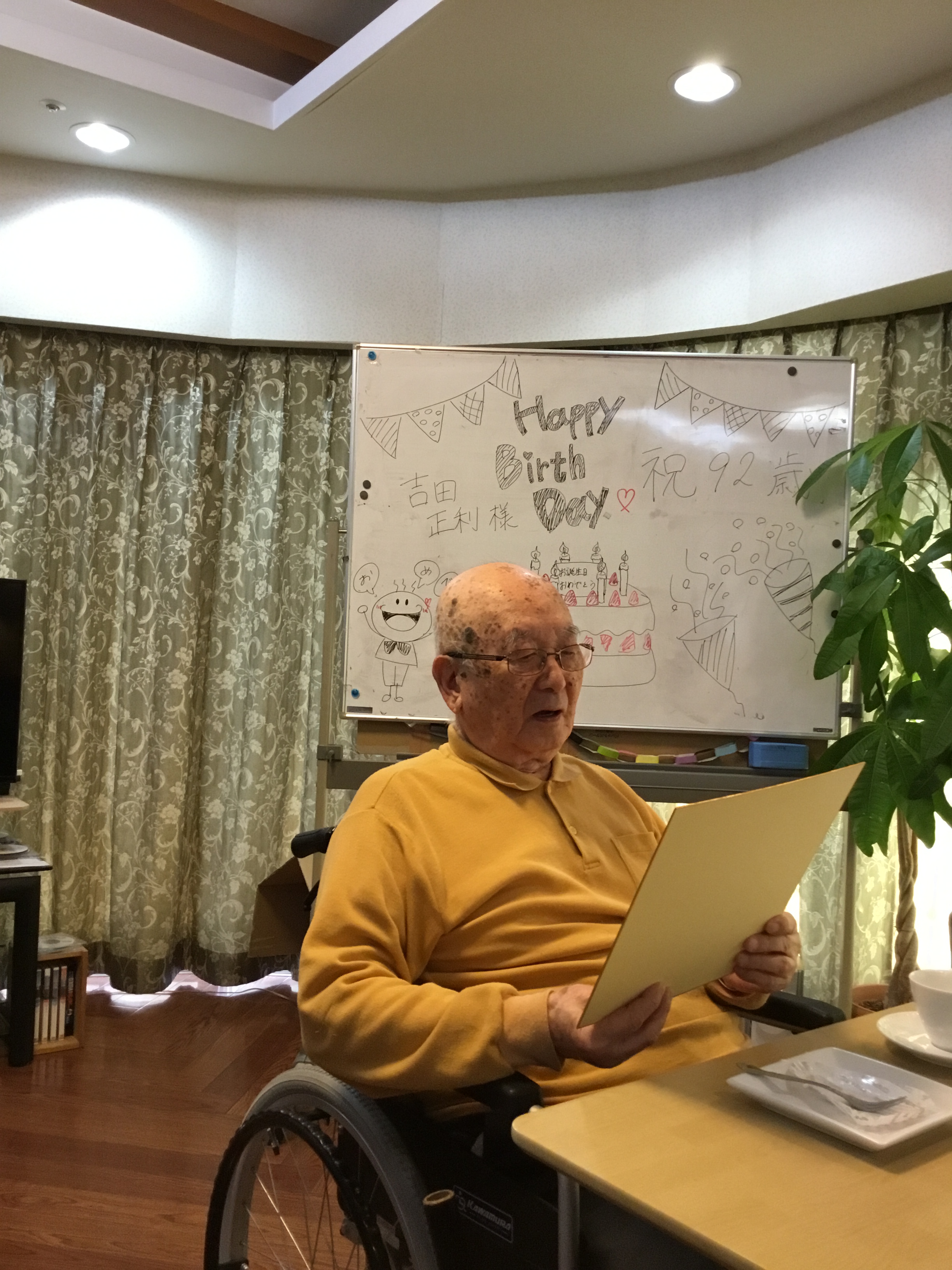こんにちは!シニアホーム飯盛ブログ担当です!! 本日はお誕生日会のご様子をご紹介したいと思います! 12月は二人の入居者様がお誕生日を迎えられました(^^)/ なんとなんと、、お二人はお誕生日が1日違いだったので 2日連続でお祝いさせて頂きました☆☆ 92歳のお誕生日を迎えられ、 スタッフからお祝いの色紙をプレゼントさせて頂きました♪ その場で1つ1つ読み上げてくださり、 スタッフもとても嬉しかったです(●^o^●)
