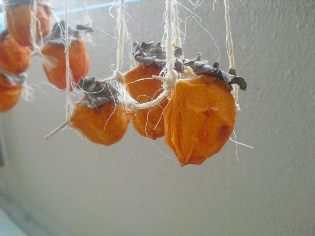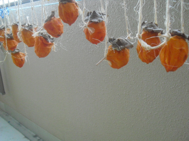 先日のつるし柿がだんだんと風合いが出てきました(^U^)!