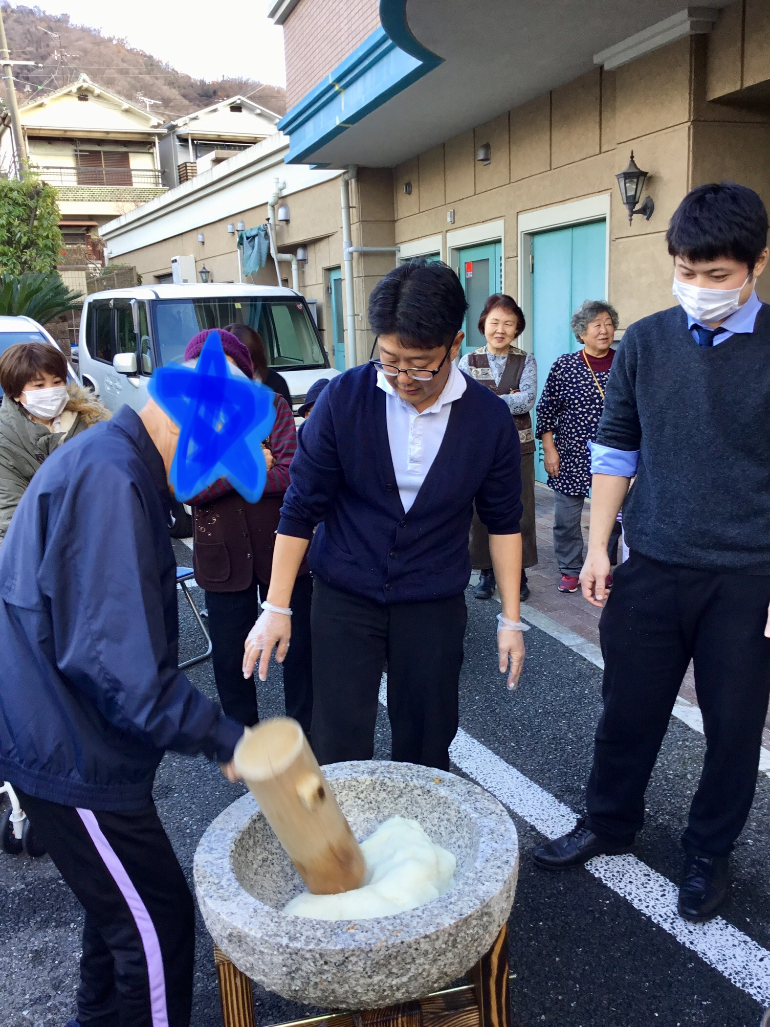 もちつき大会 2019 12/30 スタッフブログ シニアホーム飯盛 2019年12月30日こんにちは!シニアホーム飯盛ブログ担当ですo(^▽^)o先日12月28日に餅つき大会を開催しました!職員もつきます(o^▽^)o男性入居者様の力が発揮されますね!!地域の方々にも参加していただきました!ついた餅は鏡餅として飾り付けました!!ご参加頂いたご近所の皆様、ありがとうございました! スタッフブログ シニアホーム飯盛