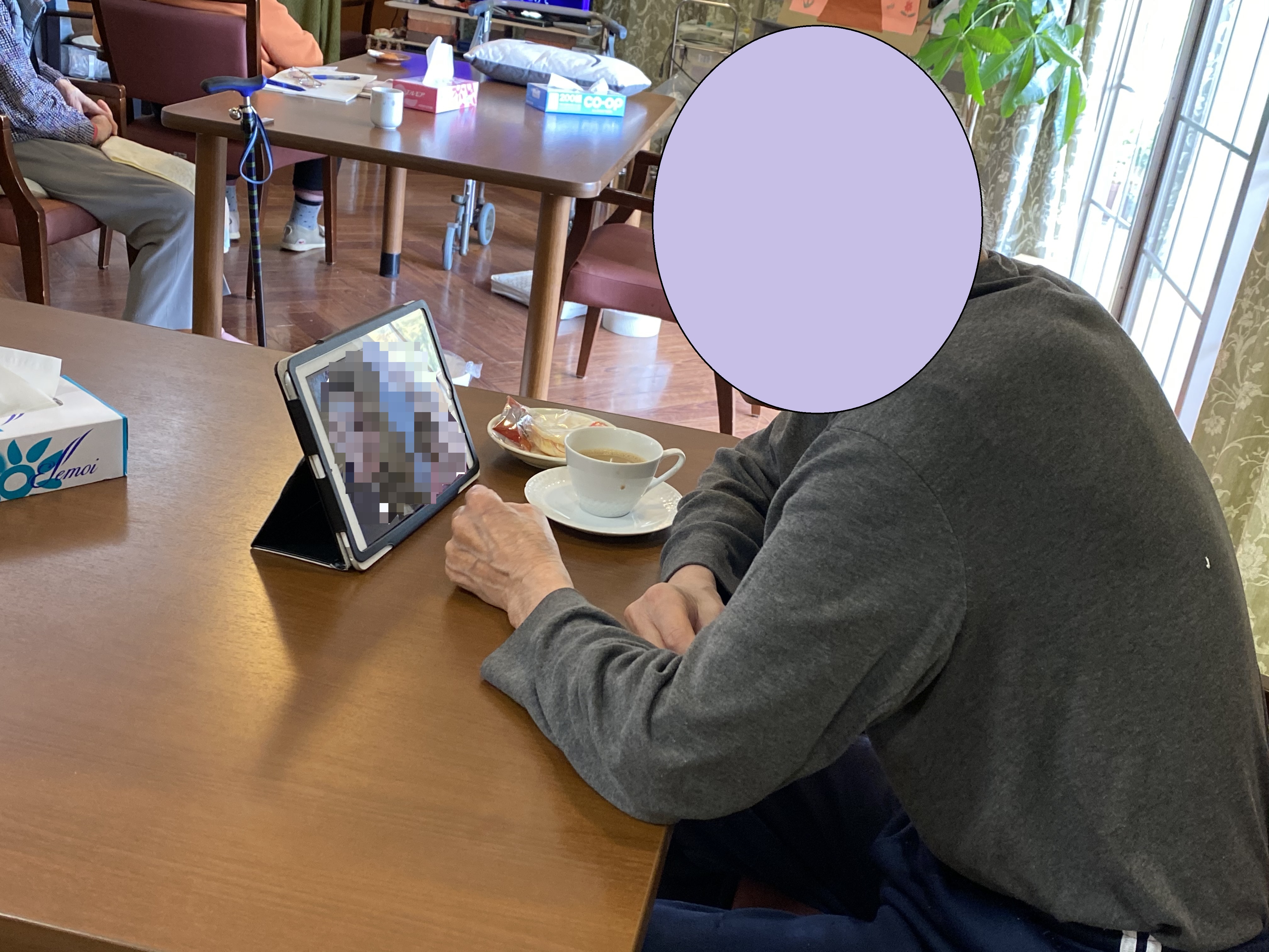 当施設では、新型コロナウイルスの影響で面会を制限させて