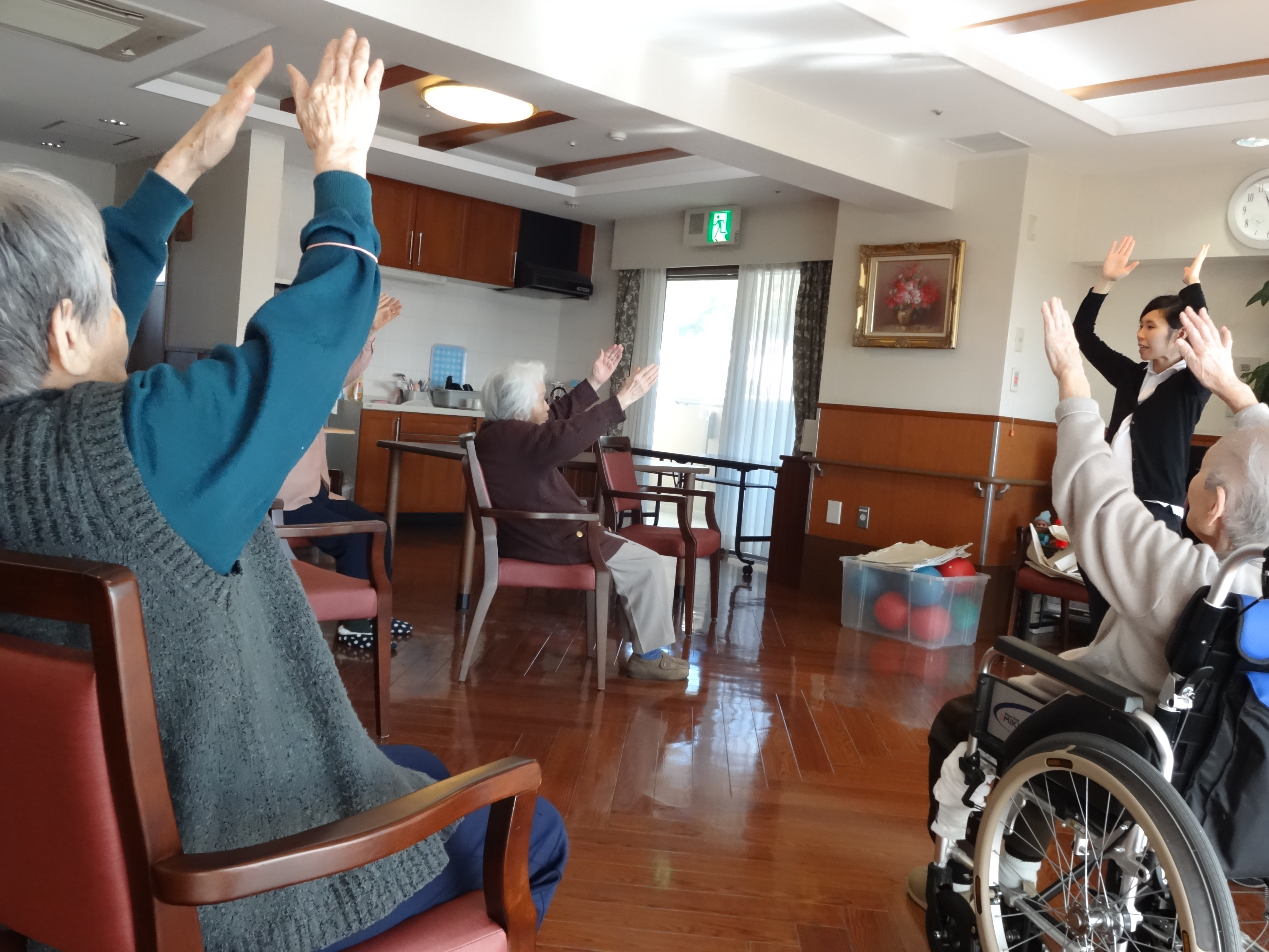 元気に行きましょう! 2015 11/30 スタッフブログ シニアホーム飯盛 2015年11月30日こんにちは☆ブログ担当の松本です!朝の体操のご様子です!(^^)!ストレッチ体操から口腔体操、ボール体操など、その日の担当職員が試行錯誤し参加された皆様と楽しみながら行っております(^^♪「体操がね、すごく楽しみやねん!」というありがたいお言葉も頂き、私たち職員は一層やりがいを感じています!!しっかり身体を動かして怪我なく楽しい1日を過ごして行きましょうね(^_^)/ スタッフブログ シニアホーム飯盛