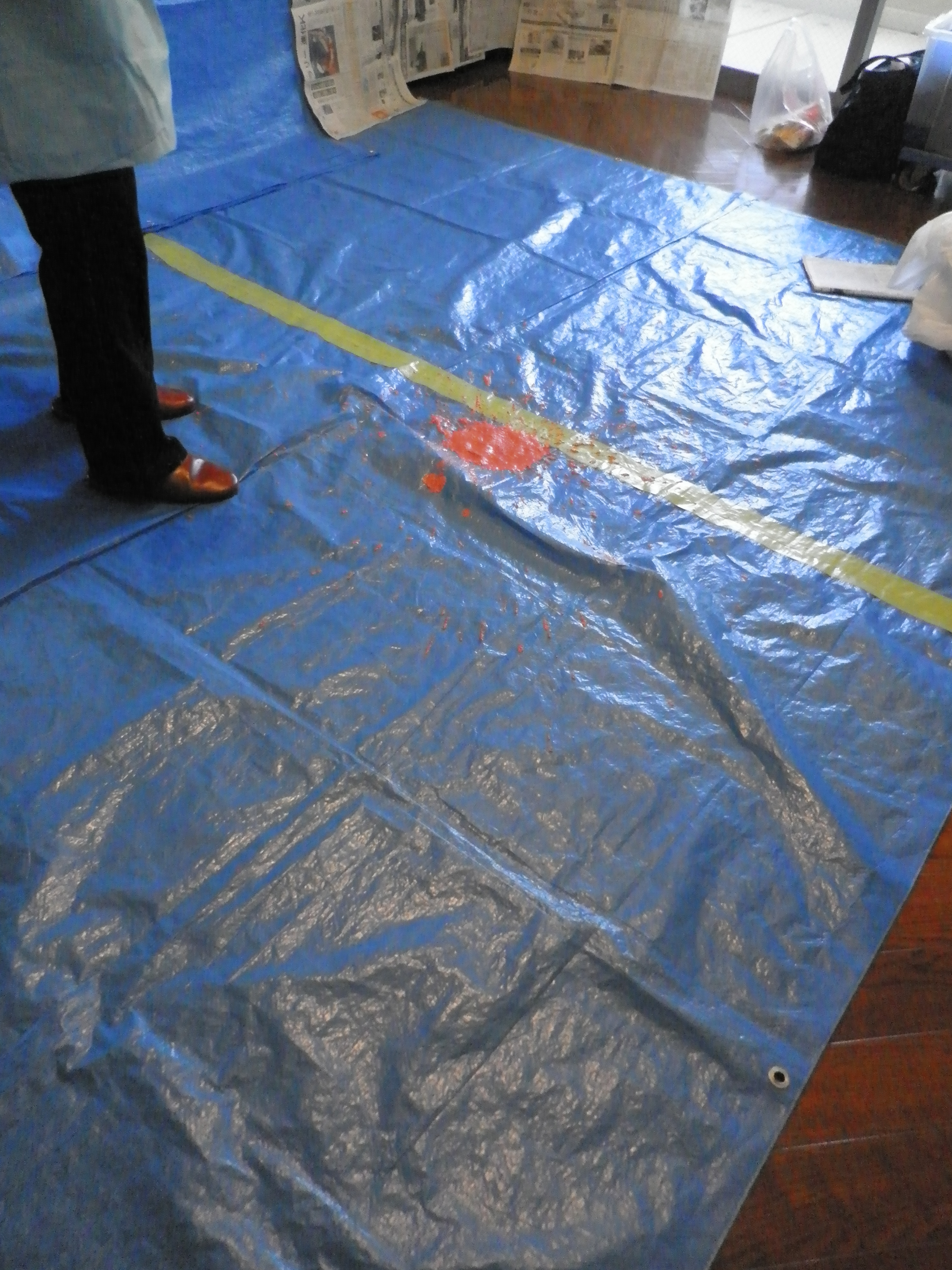 演習用に嘔吐物に似せたものを約1mの高さから落とし、