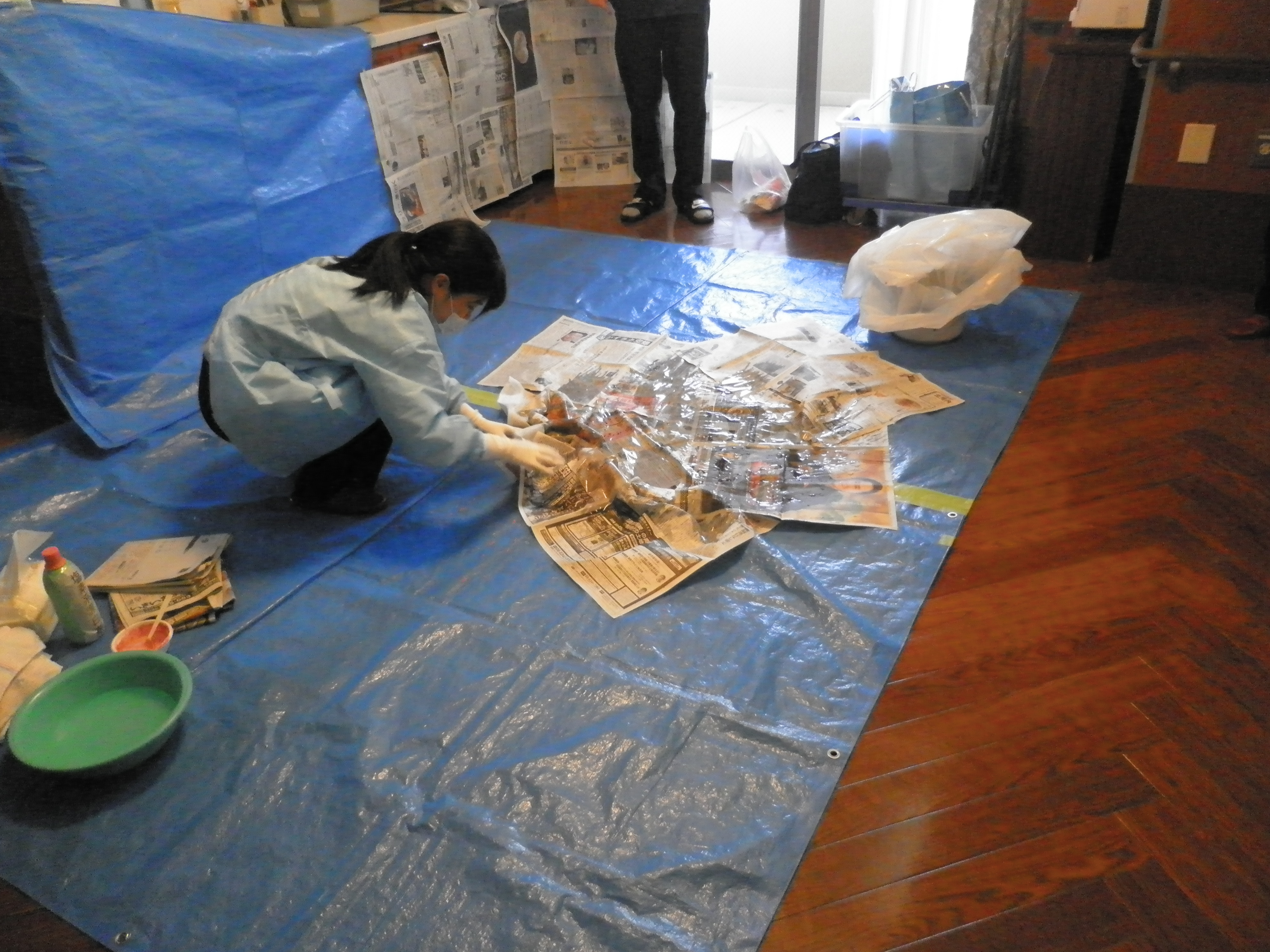 新聞紙や雑巾をゴミ袋に入れきちんと廃棄すれば完了です。