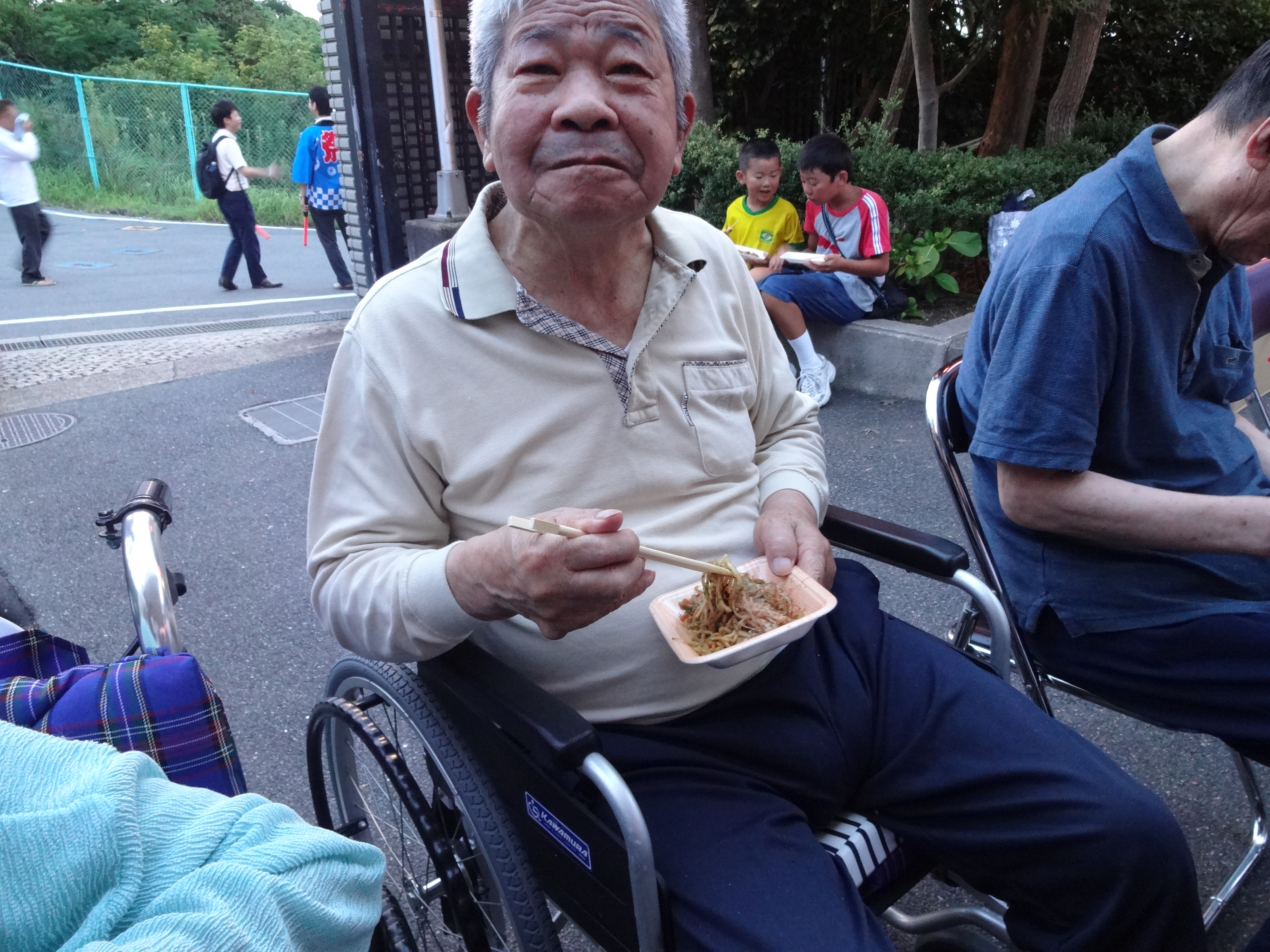 入居者様は焼きそばやおでん、焼き鳥・ビールなど堪能され「美味しいなー。それにしてもすごい人やなー。」