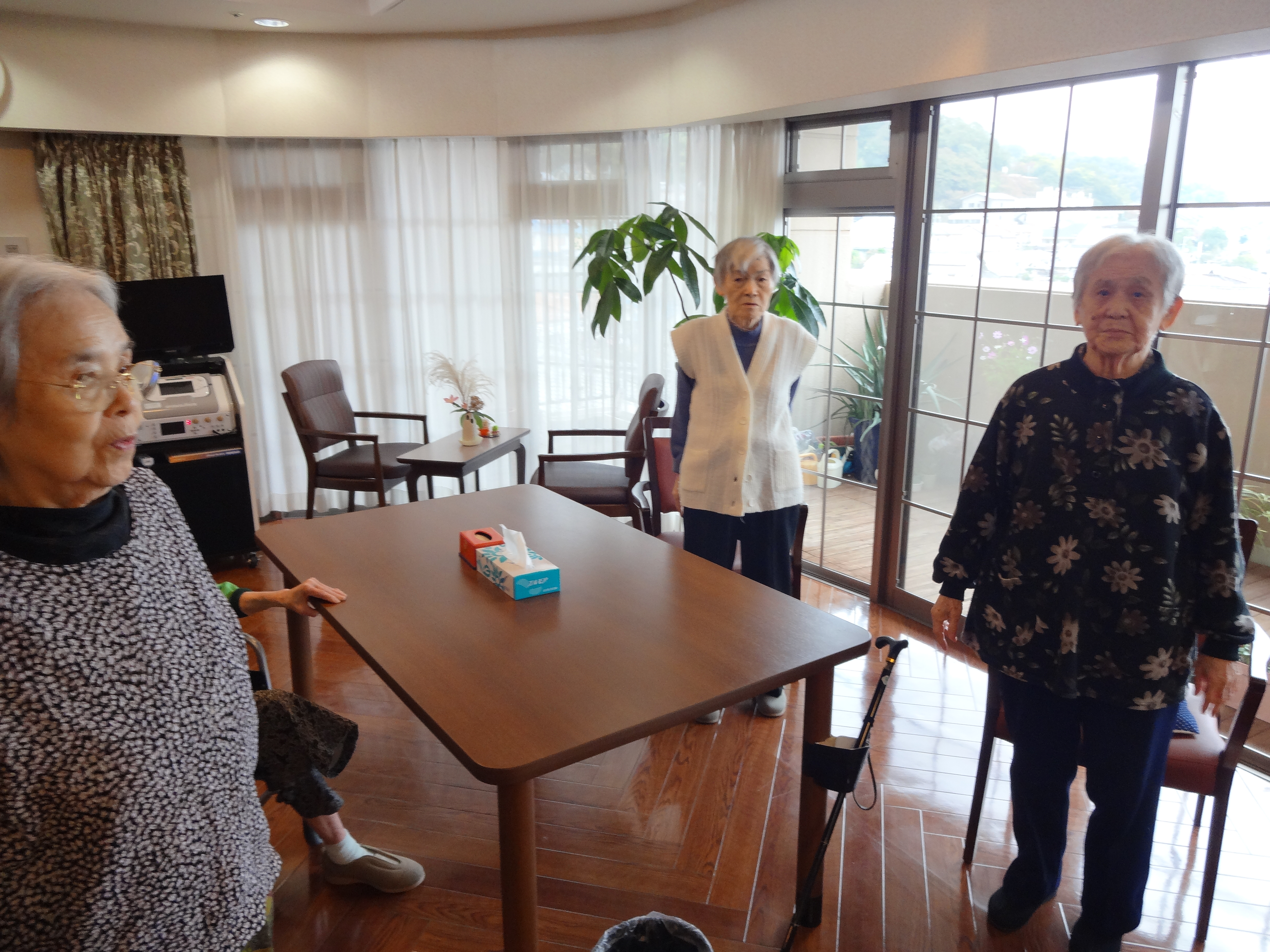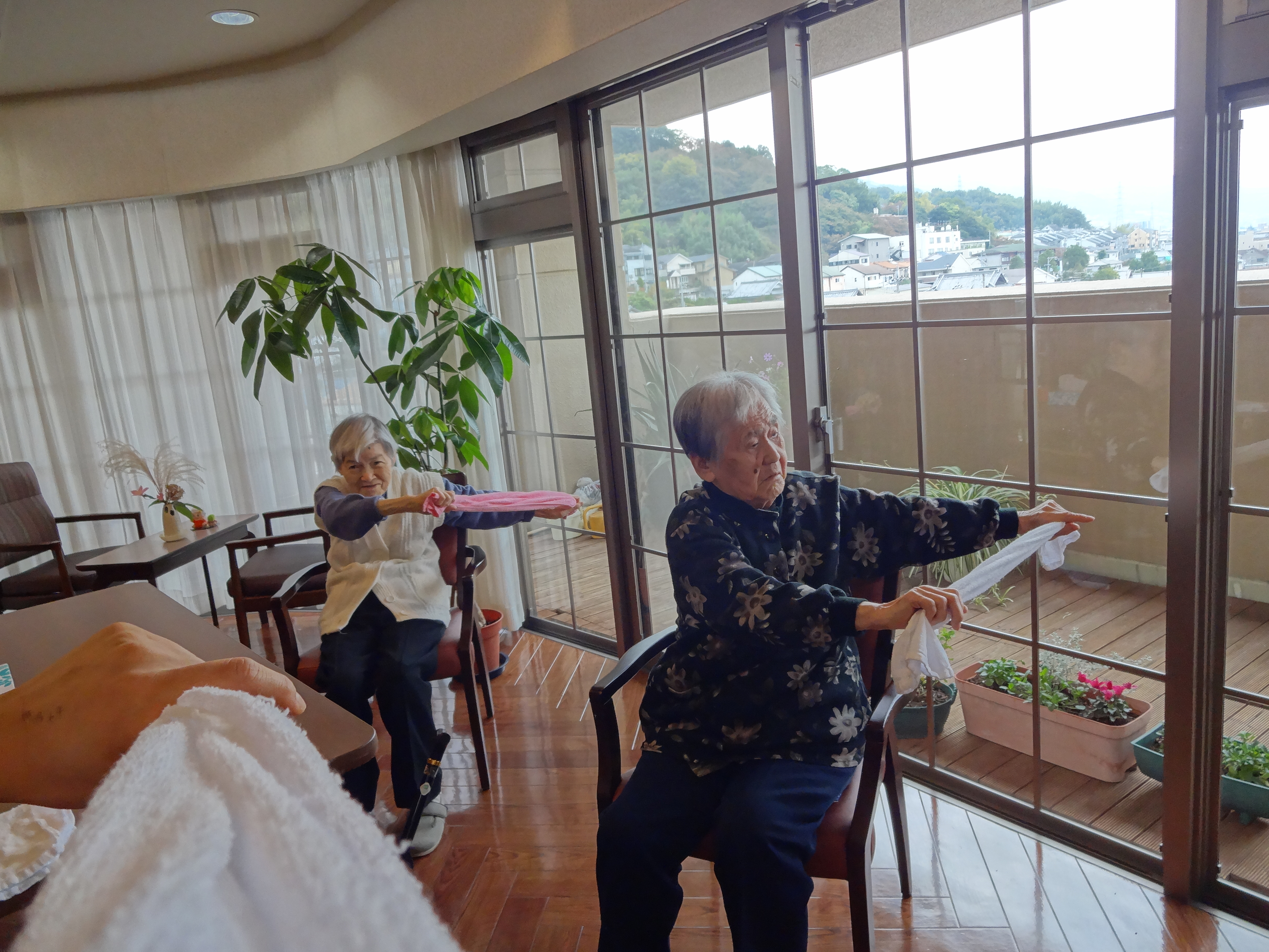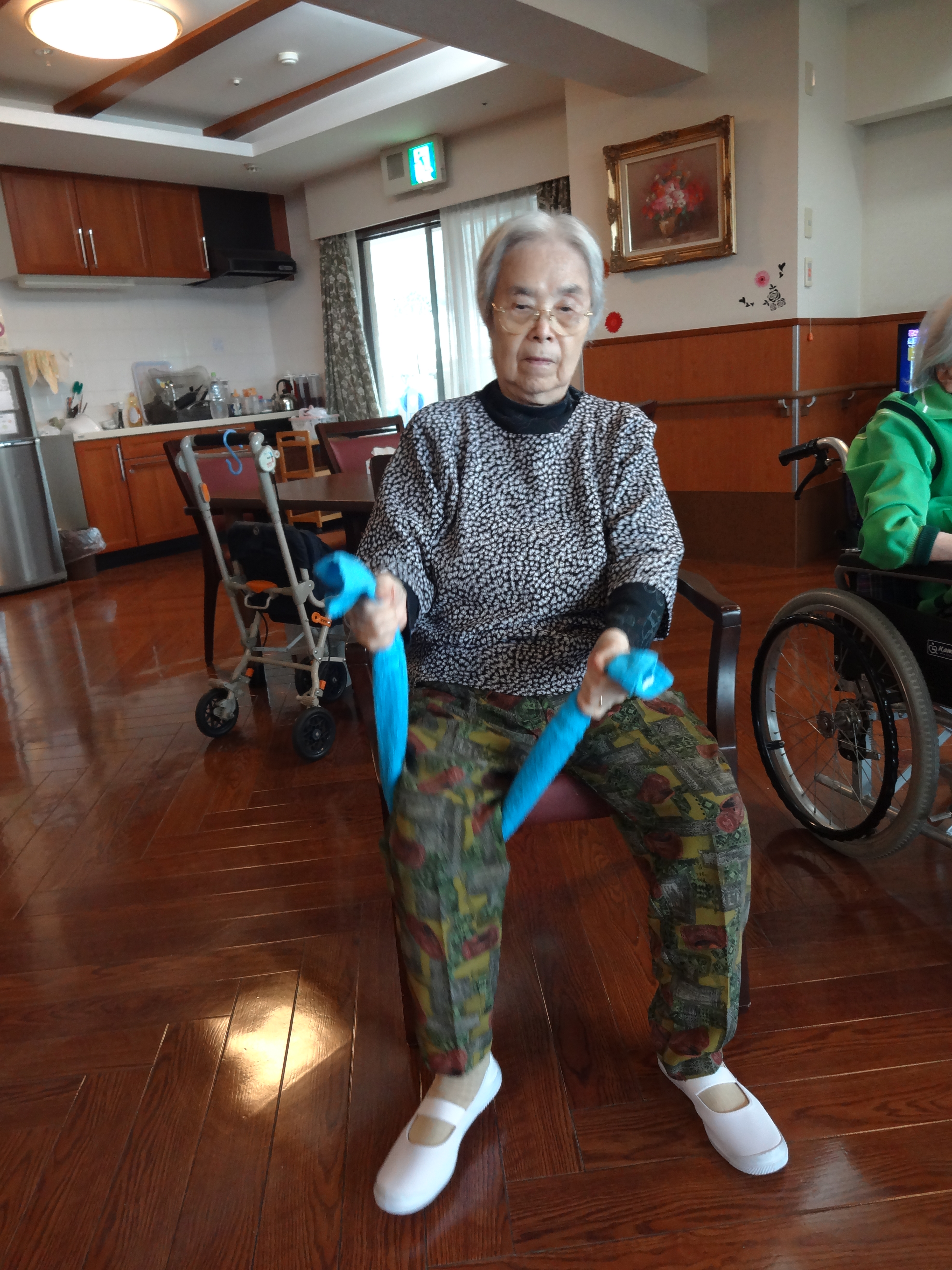 入居者様も「伸びるーー(笑)」と楽しみながら行われています!