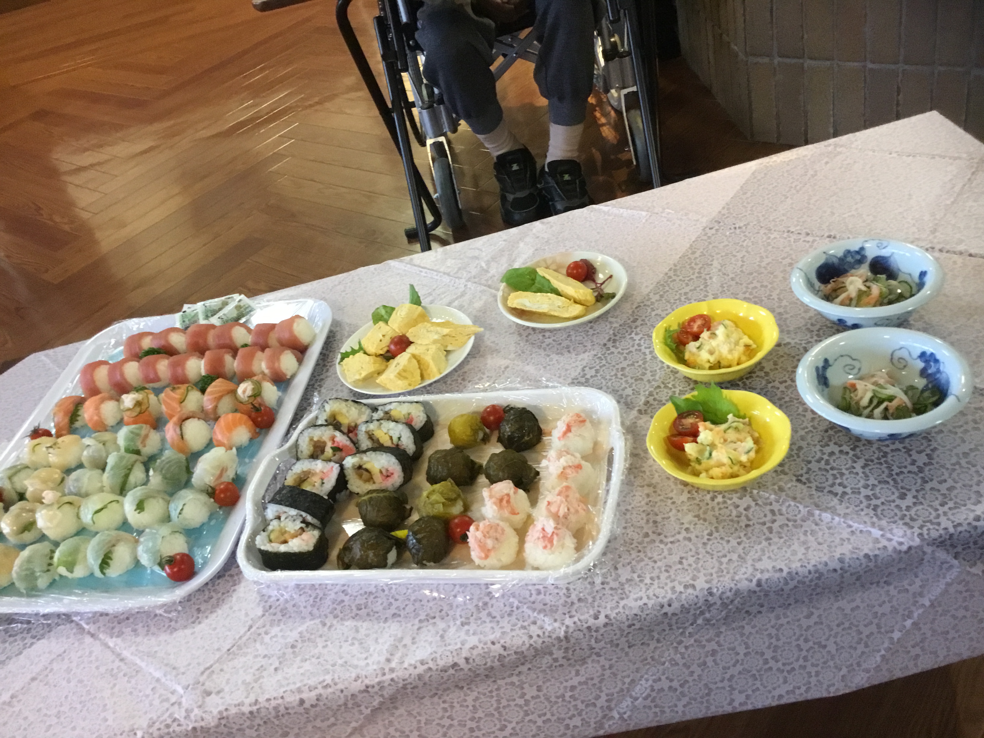 完成した料理です!手まり寿司はとてもかわいらしく仕上がりました!