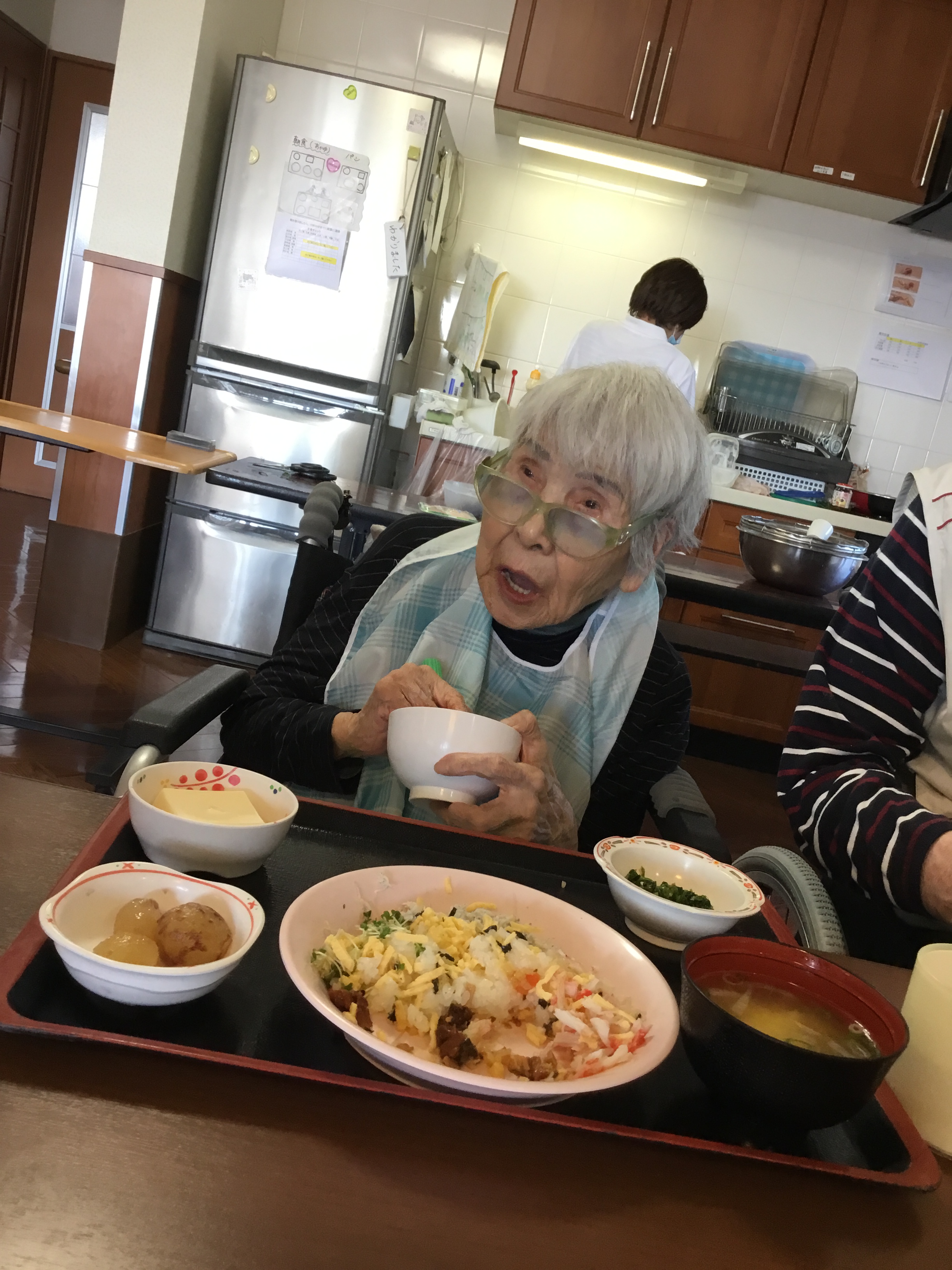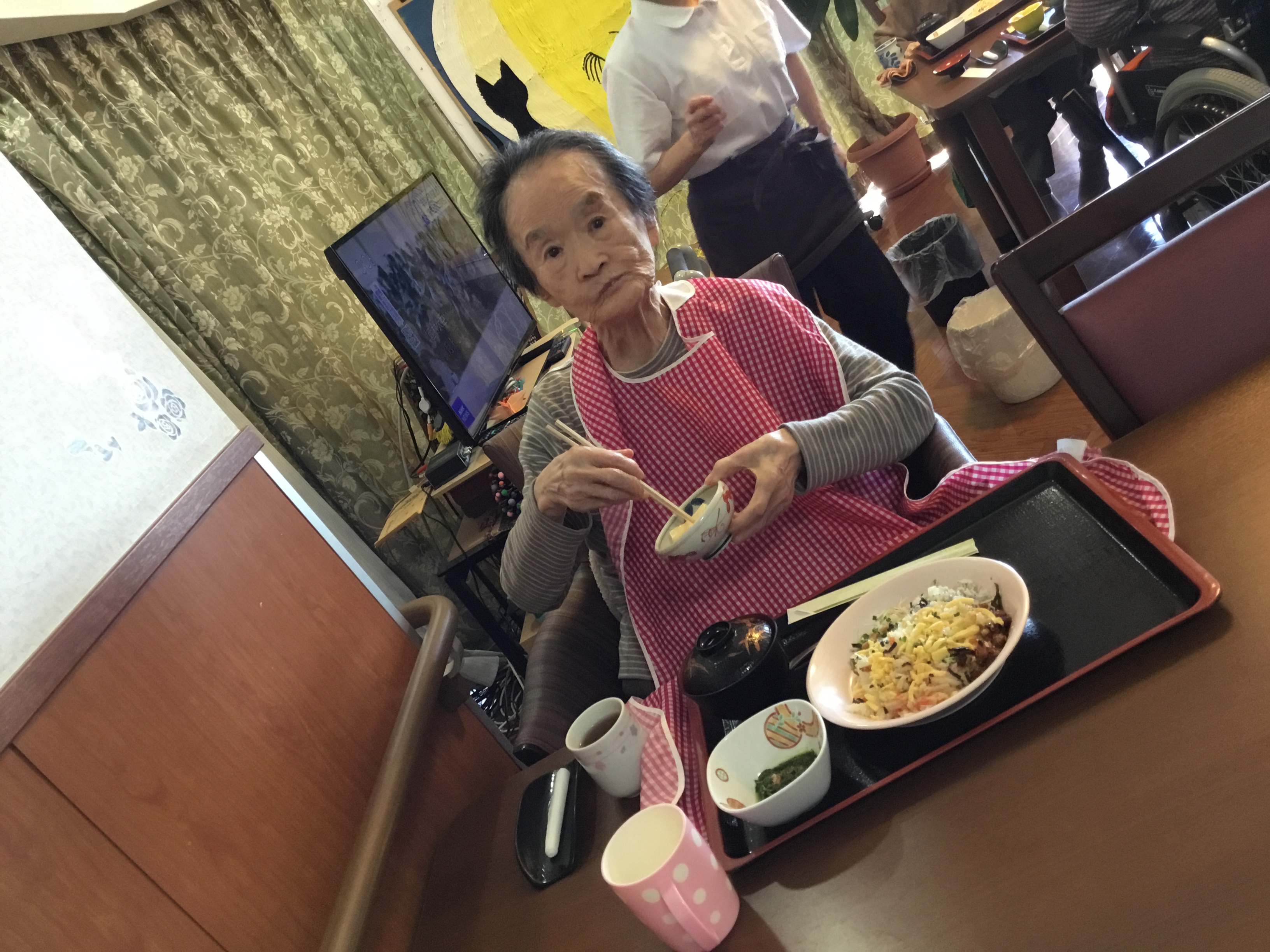 こんにちわ!!シニアホーム飯盛ブログ担当です! 寒い季節が近づいてきましたが、 皆さん体調は崩されていませんでしょうか(´・ω・`)?? 日中、日差しのあるところは暖かくて私は日向ぼっこをしていると眠くなってきてしまいます。笑 寝てる間に風邪を引かないようにしないと・・・笑 さてさて! 先日、シニアホーム飯盛では毎月恒例の 手作りごはんでした!! メニューはみんな大好きちらし寿司!! 私は玉子豆腐が好きだったりします(*´ω`*)☆