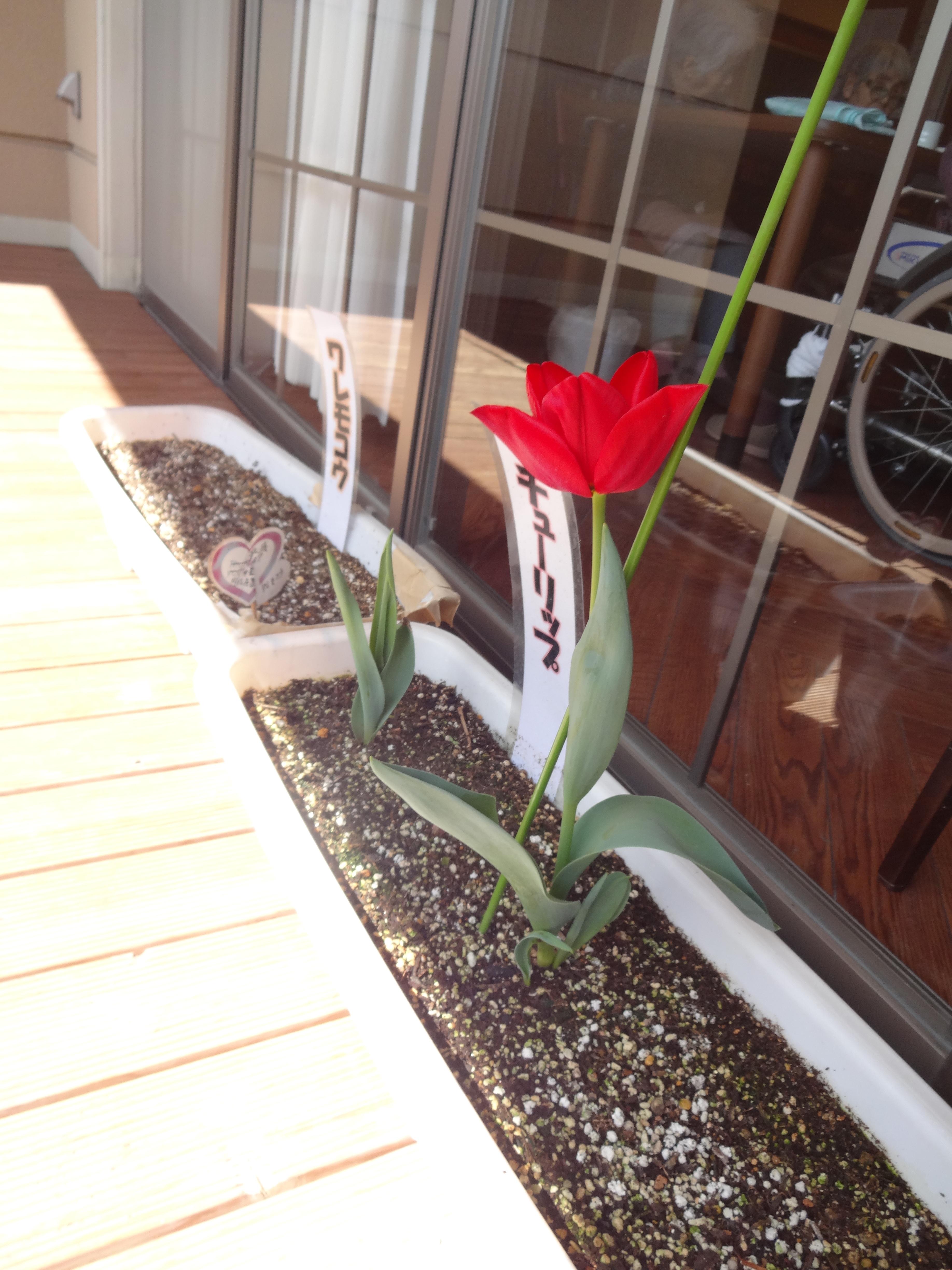 昨年の10月ごろに球根から植えたチューリップが花を咲かせてくれました(^^♪