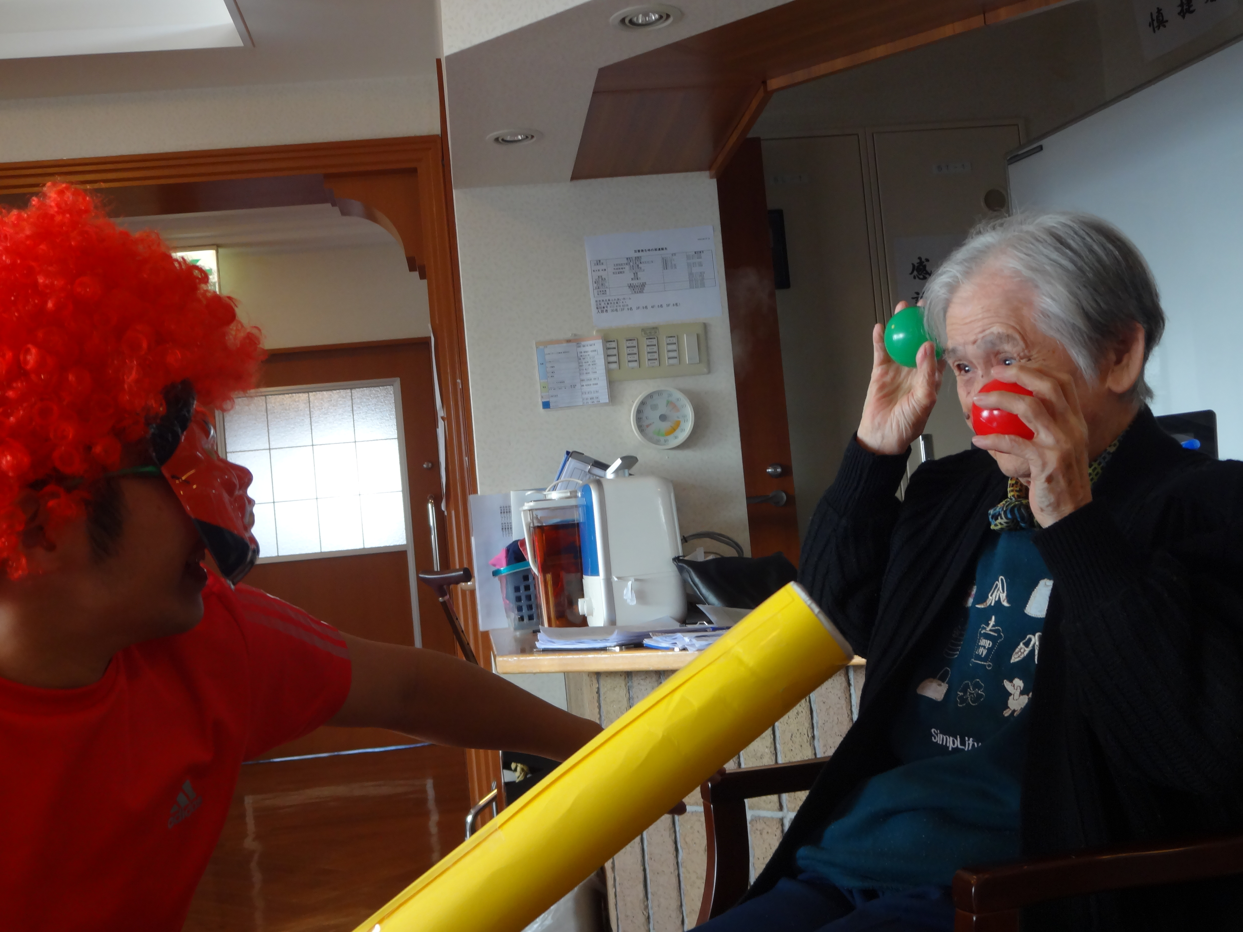 豆よりもはるかに大きいボールで・・・鬼退治です!!笑