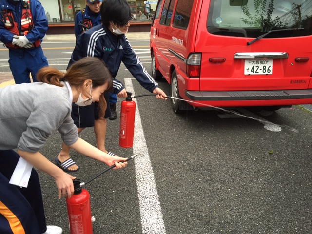 最後に消火器の使用法を教わりました。使い方は簡単なのですが、実際に使用する時は
