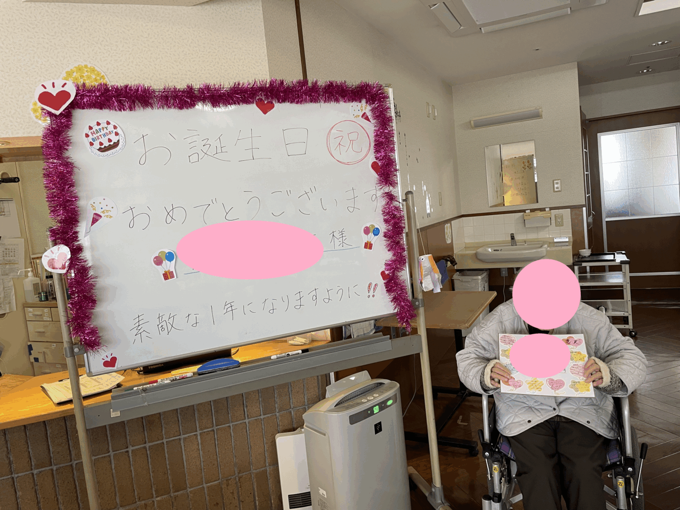 先日、シニアホーム飯盛では、お誕生日を迎えられたご利用者様の誕生日のお祝いをしました!
