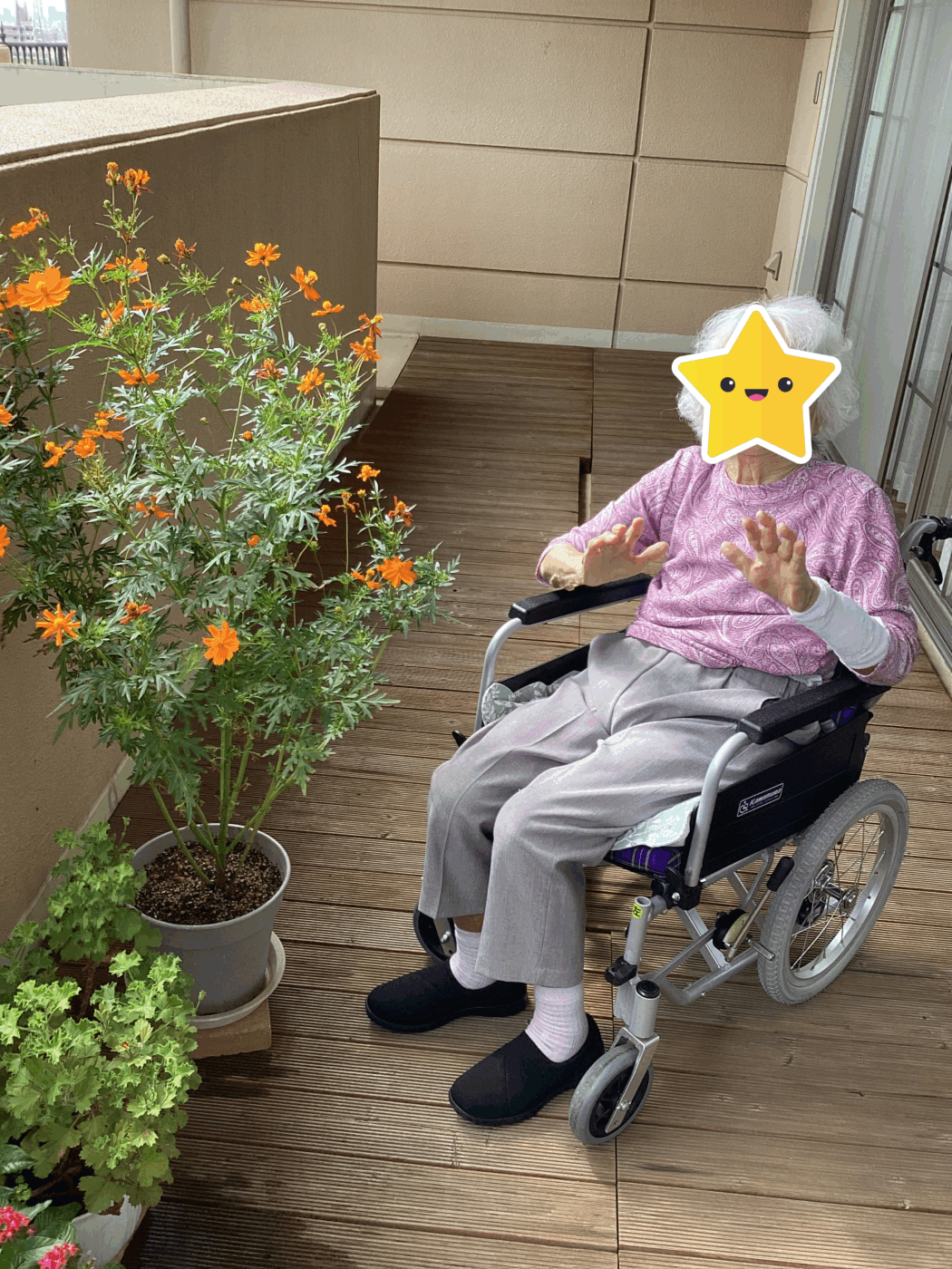 天気の良い日には、ベランダで日向ぼっこや、お花の水やりをして下さいます!