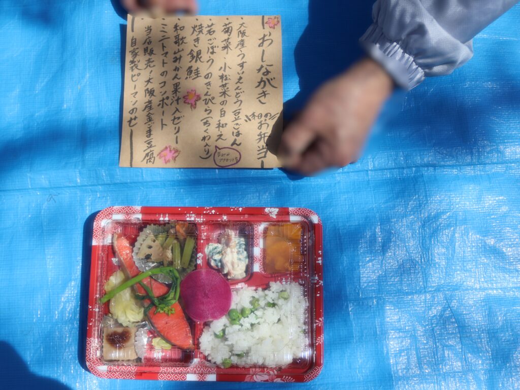三ノ瀬公園に到着し、小路にある「八百屋カフェはっぴーべじたぶる」さんのお弁当を食べながらお花見を楽しみました。