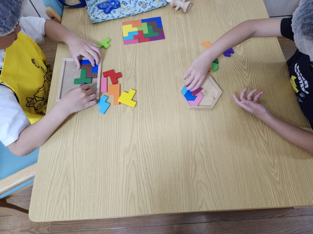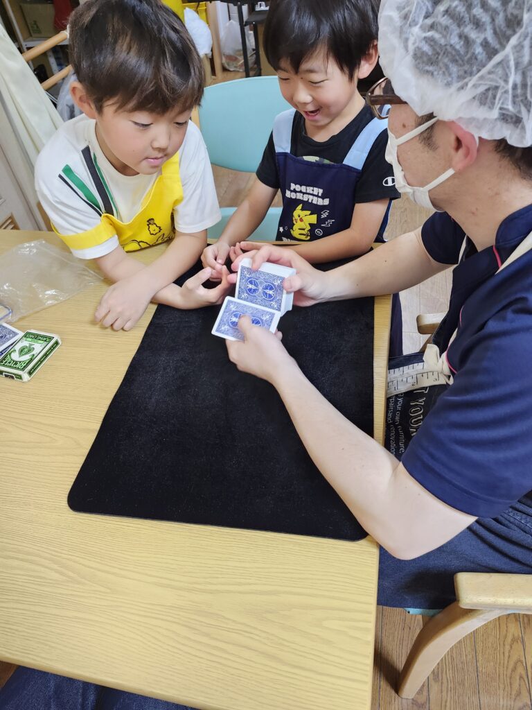 調理を終えてカレーを煮込んでいる間、職員と一緒に施設にあるパズルやけん玉、トランプで
