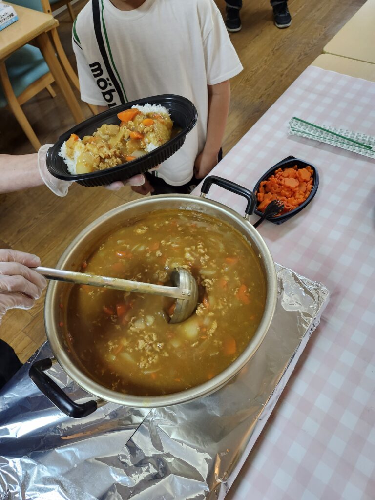 煮込み終えたら、出来立てのカレーを「美味しい!」と沢山召し上がっていただきました。
