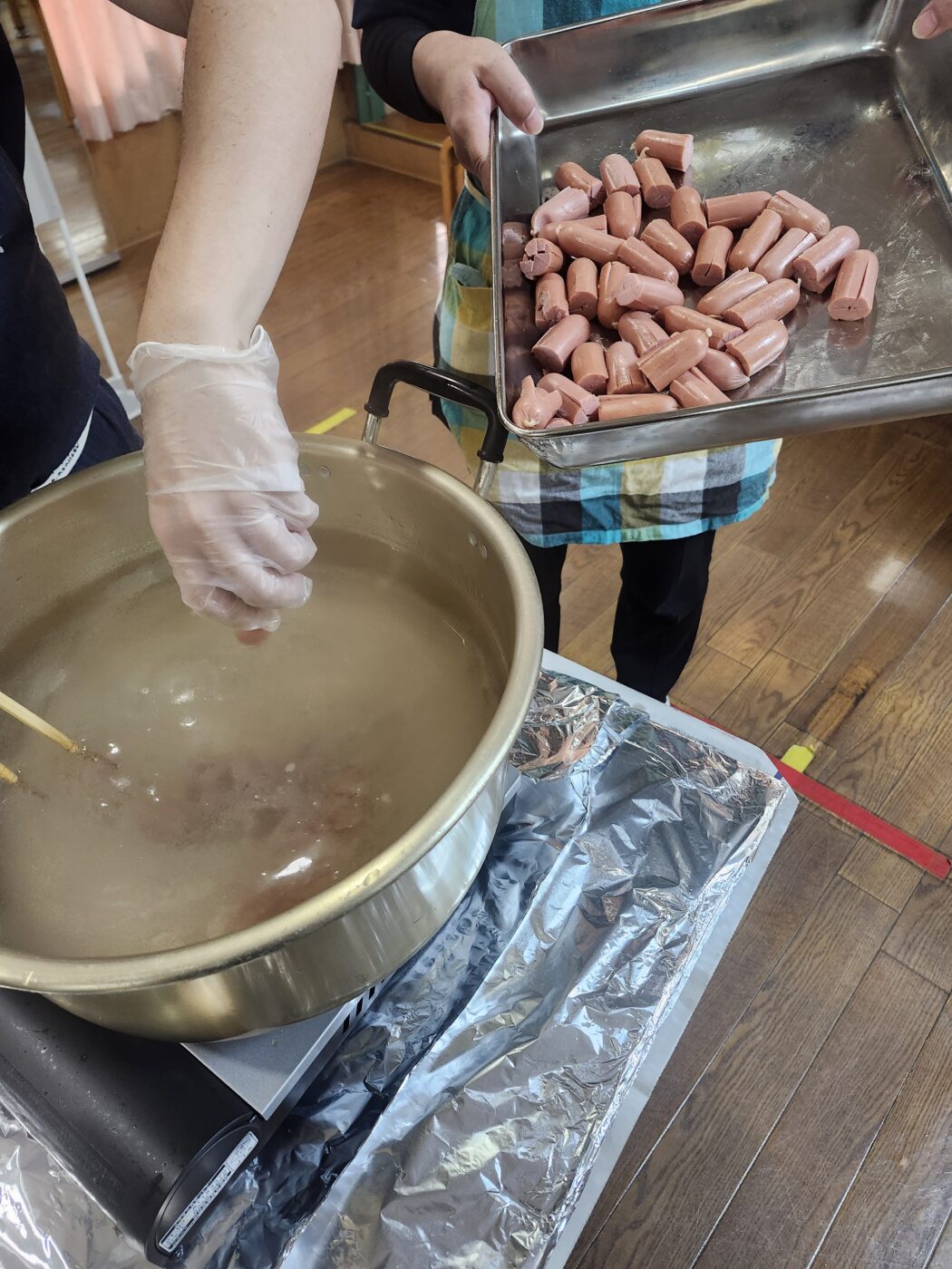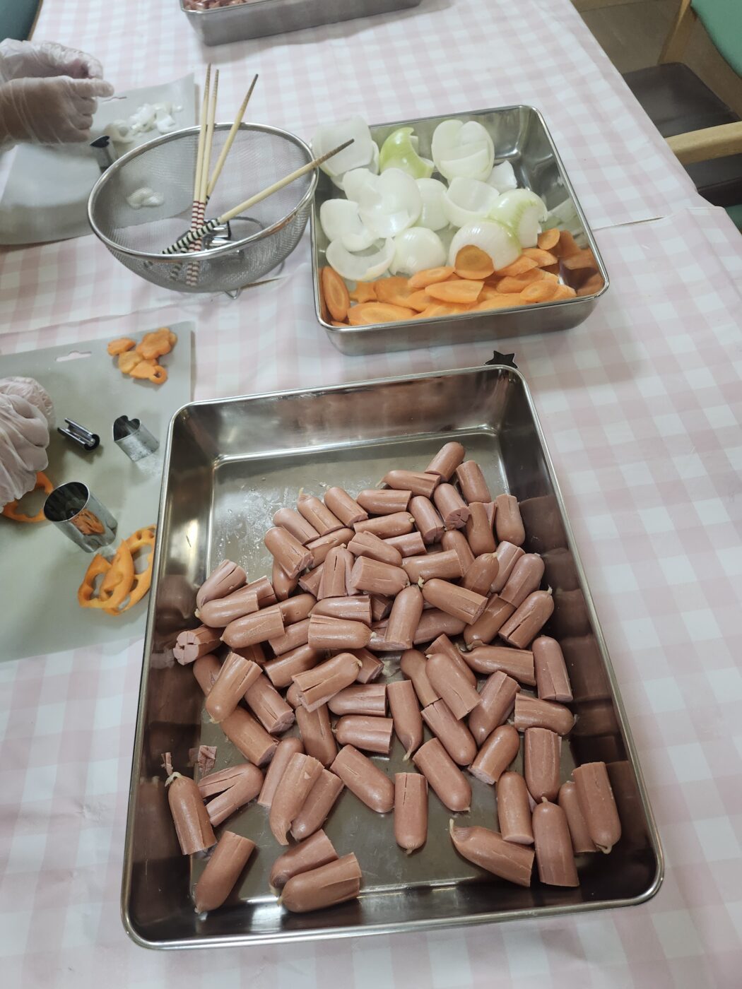 カレーを煮込み終え、ウインナーを盛り付けていきます!