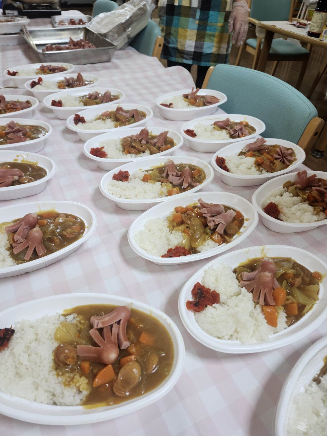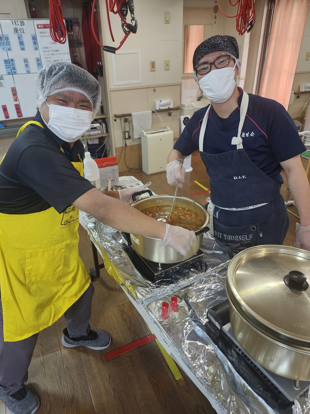 因みにカレーを混ぜてる人はマジックをよく披露してくれている職員。