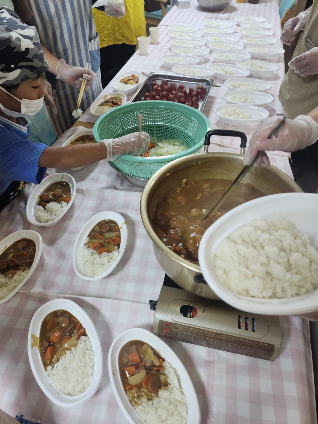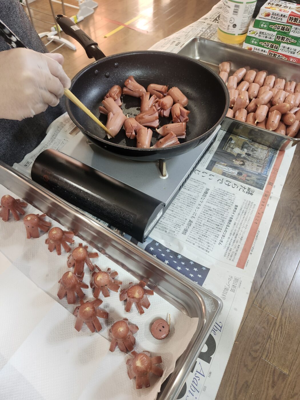 カレーを煮込み終え、ウインナーを盛り付けていきます!