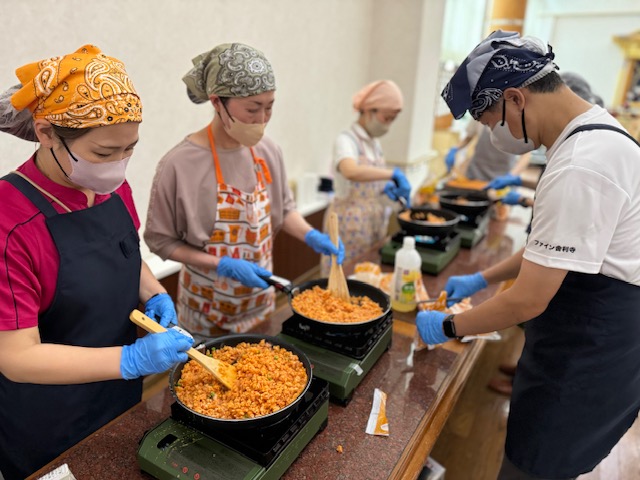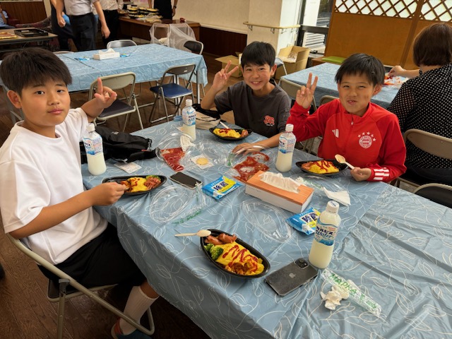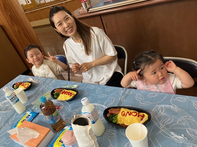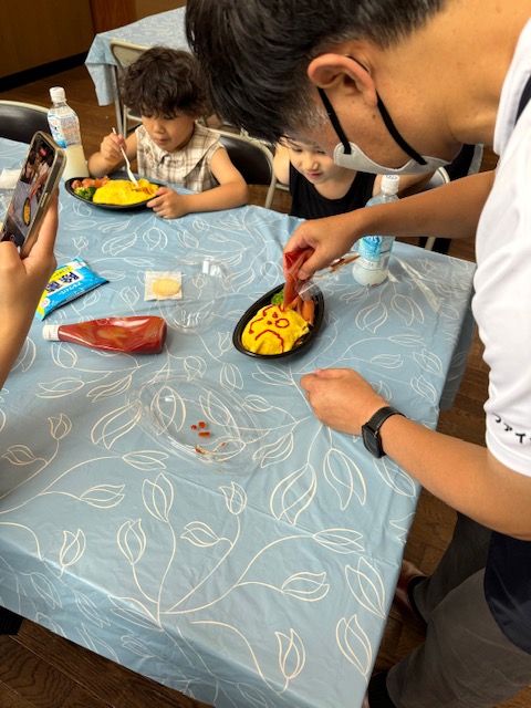 オムライスのケチャップを皆さんにかけて頂き、楽しく食べられておりました。