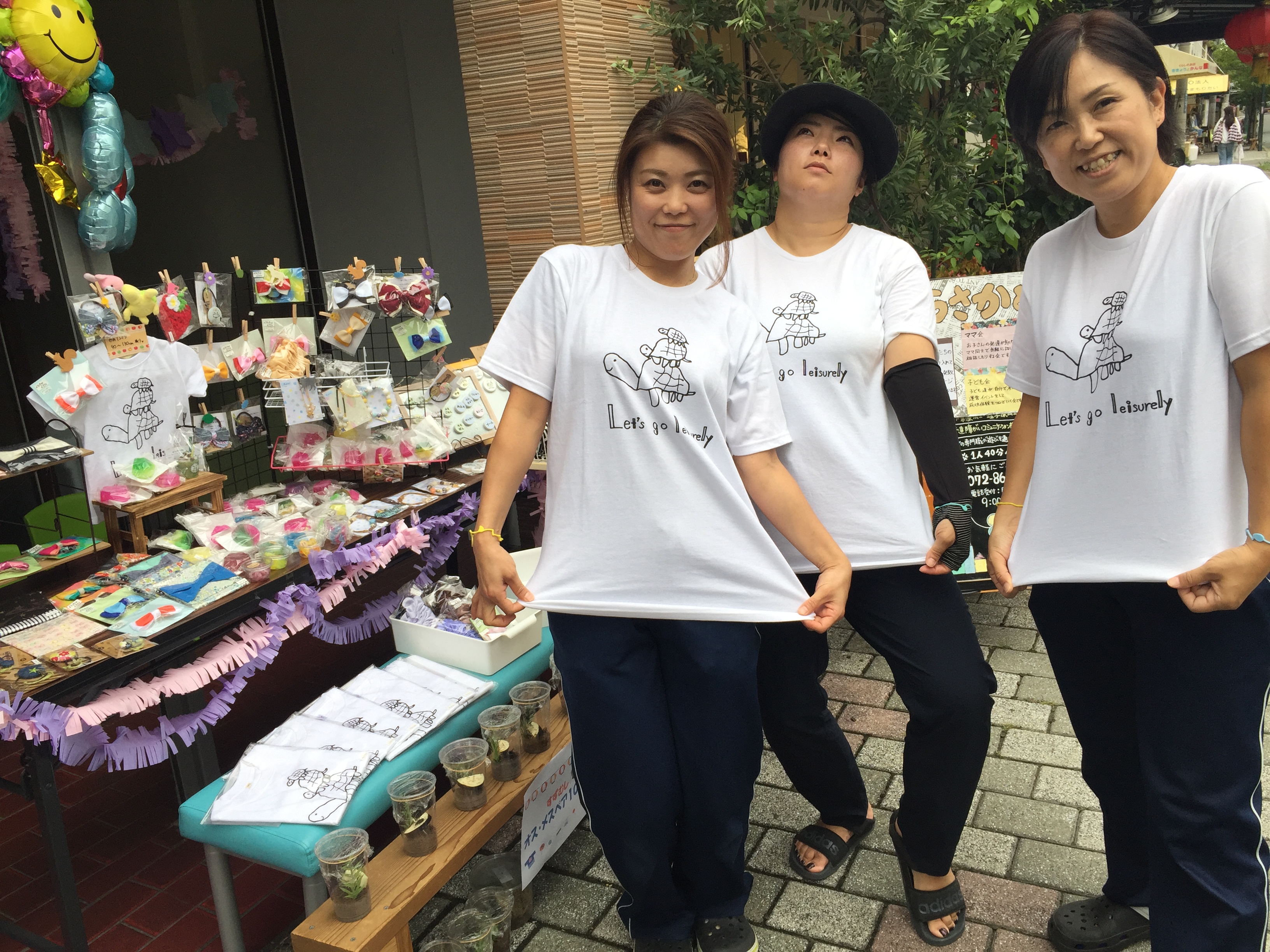 8月24日 野崎参道商店街の夏祭りが急遽中止となりましたが、 KIDSのイベントは、少し時間を早めて予定通り行いました。 IMG_0372.JPG 今回は、うさかめ保護者会からのハンドメイド販売もありました。 IMG_0373.JPG KIDS先生達もかわいいうさかめTシャツをおそろいで購入(^^♪ IMG_0374.JPG かわいいでしょ?このイラスト! KIDSのR君が描いた作品をTシャツにしています。(1枚1,900円) IMG_0370.JPG楽しい時間はあっという間、またひとつ夏の楽しい思い出がふえました(^▽^)/