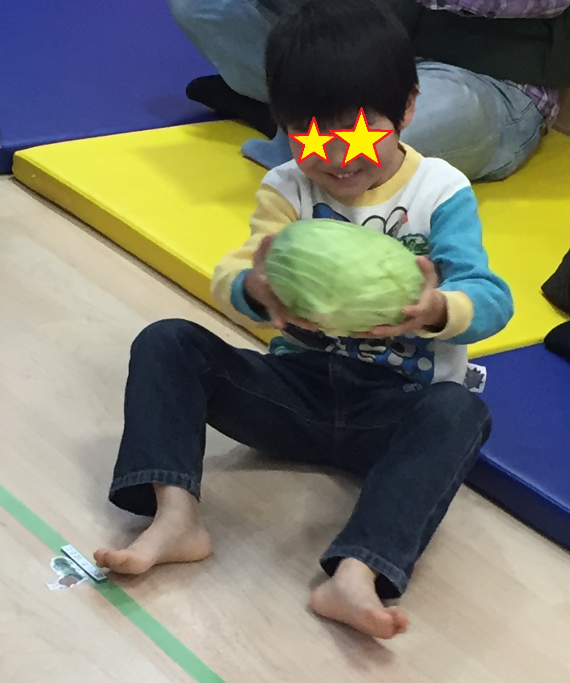 始まりの集まりで、本物の「キャベツ」を出しました。