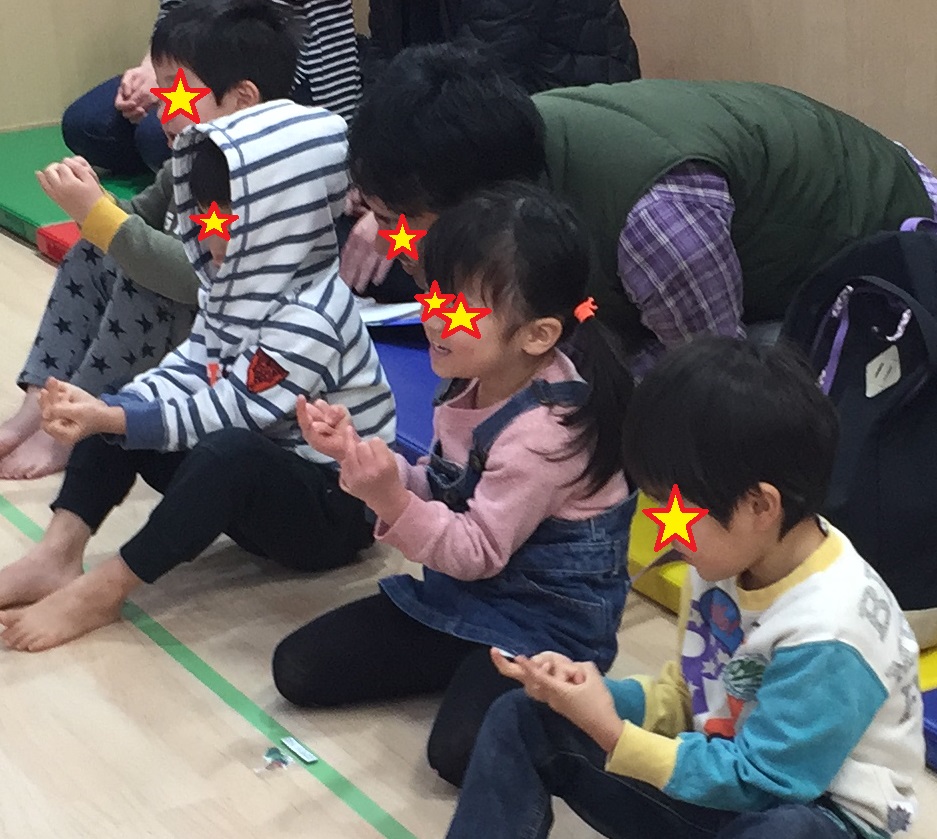 特に指を立てていくときには、中指、薬指となると、もう一方の手の助けを借りて、何とかその指だけ立てようと頑張る子どもたちでした。